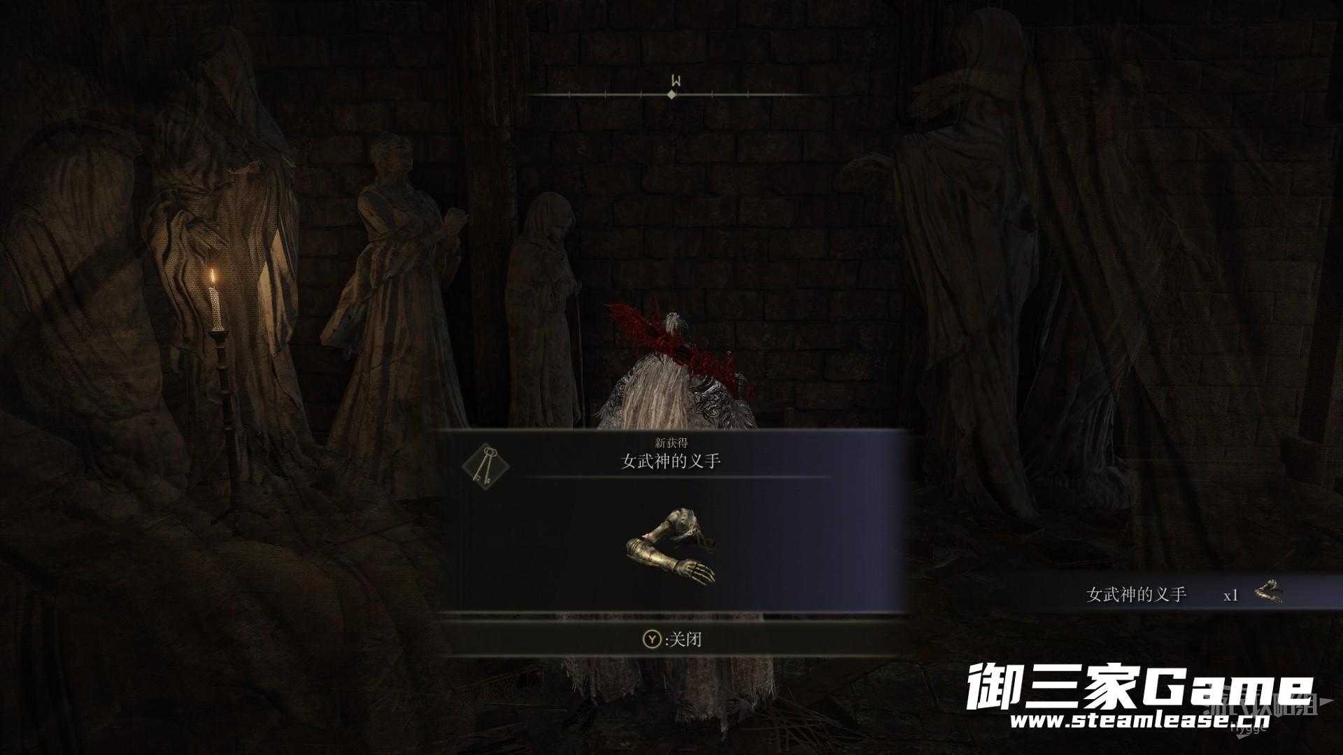 消灭一名尊腐骑士后在其后方房间中的宝箱里找到【女武神的义手】。