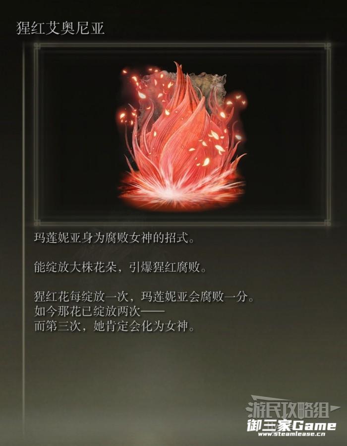 与玛莲妮亚战斗并将其消灭获得【腐败女神的追忆】。