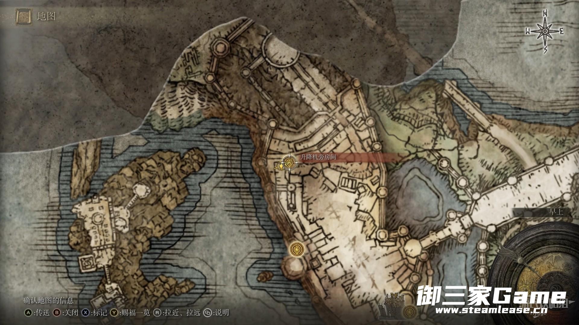 首先来到赐福【升降机旁房间】处。需要注意的是地下的BOSS难度极高,不建议玩家在前期探索地下区域。