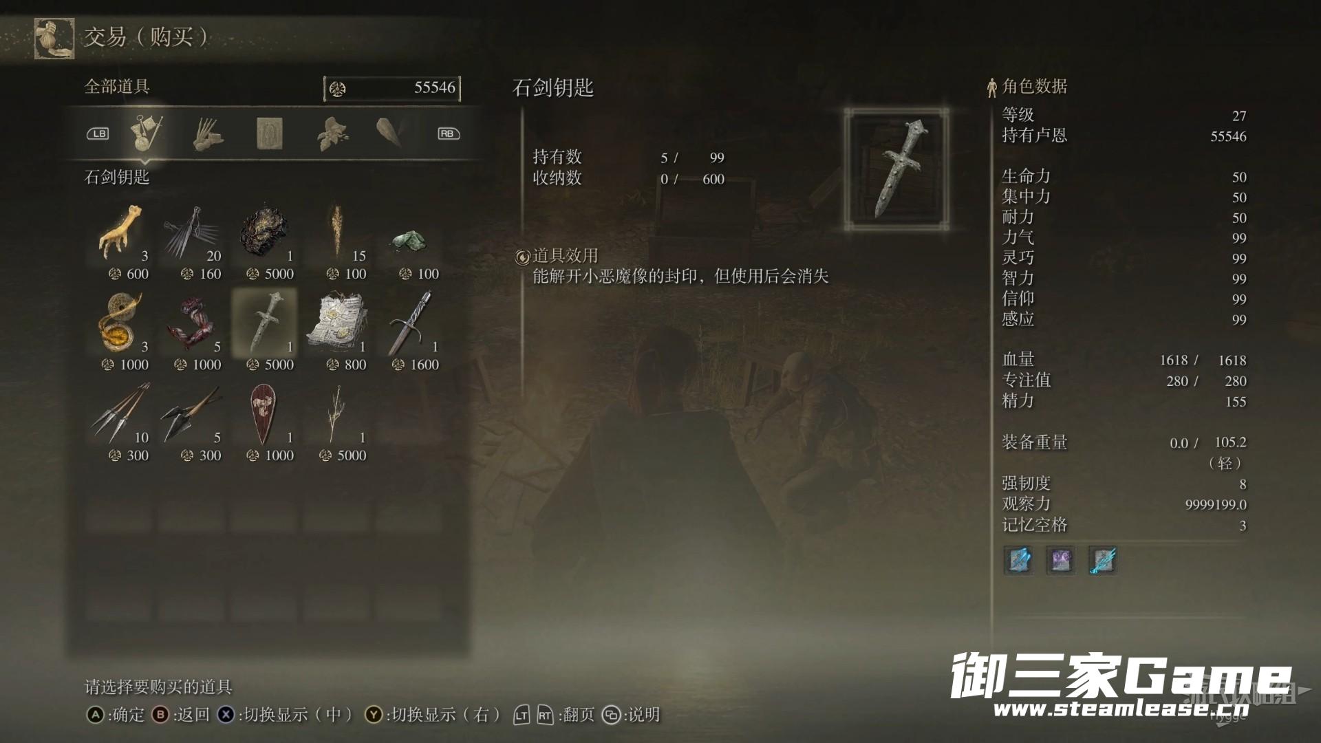 在洞窟中可以找到NPC帕奇,以5000卢恩的价格购买1把石剑钥匙。