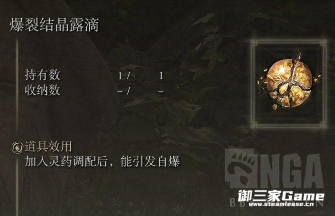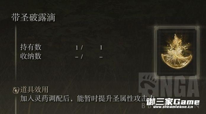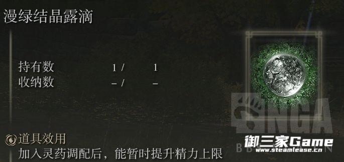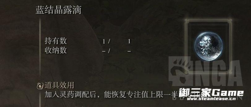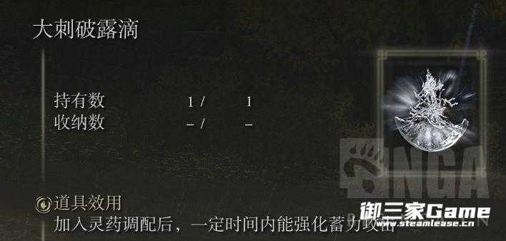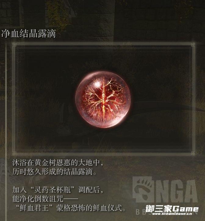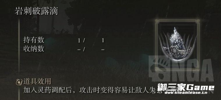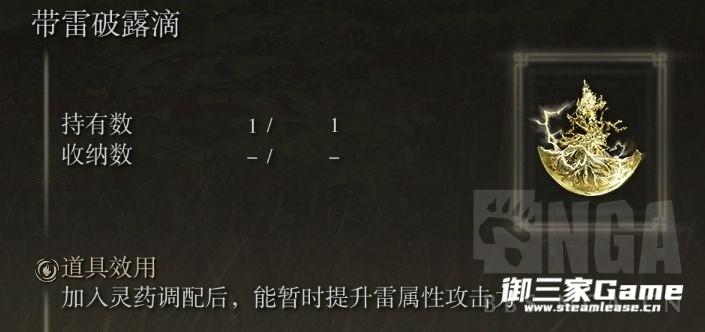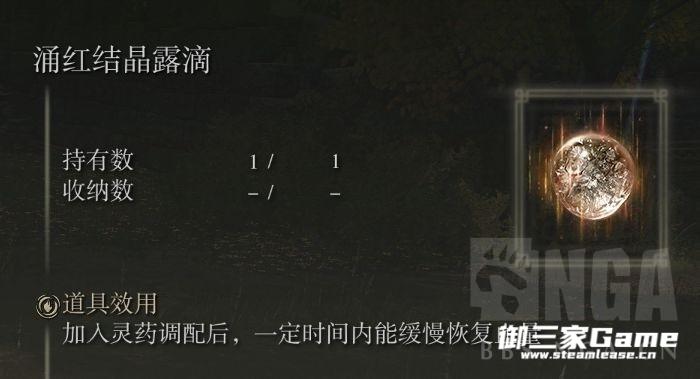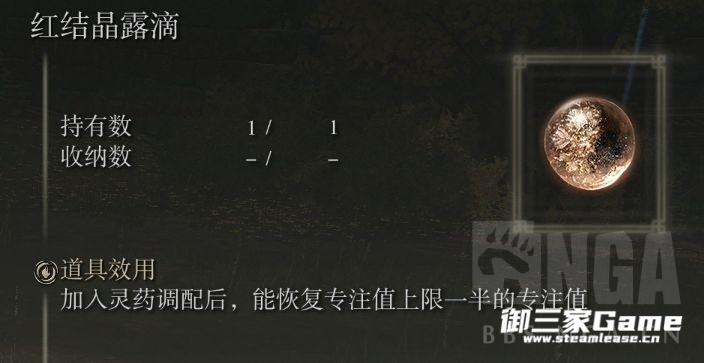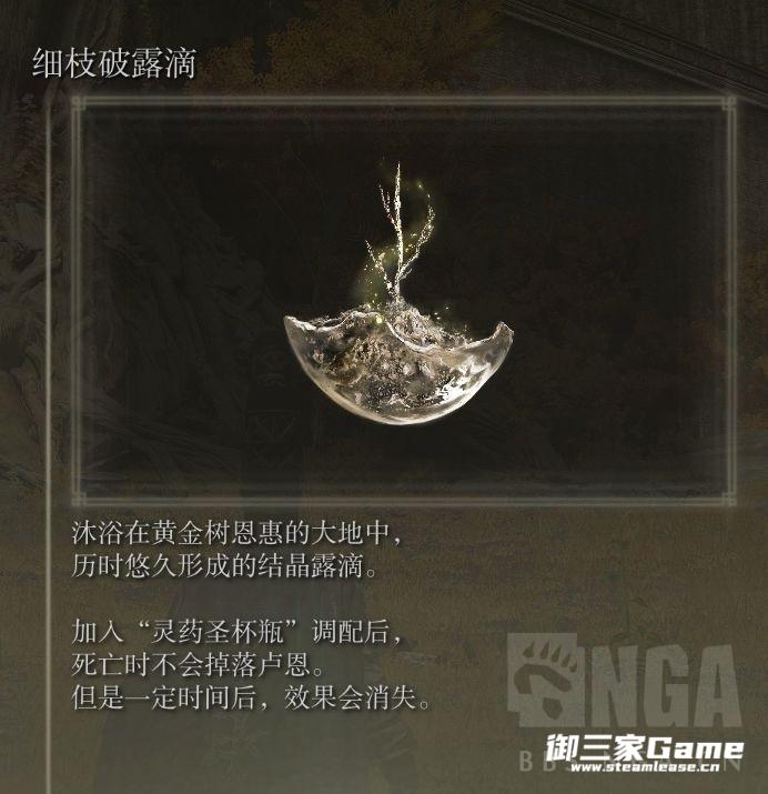 上图右侧小黄金树下可拾取第二个红结晶露滴,以及细枝破露滴,效果是一段时间内死亡不会掉落卢恩。