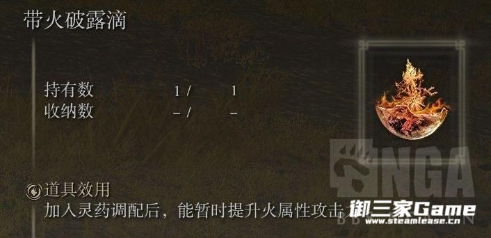 暂时提升火属性攻击力,以上出自刚进入腐败地区的那颗黄金树,应该是第三简单的黄金树。