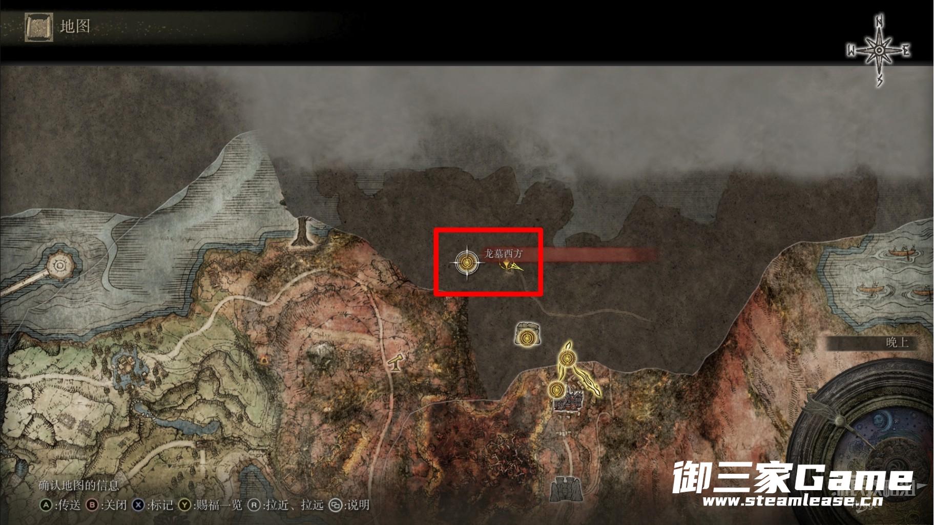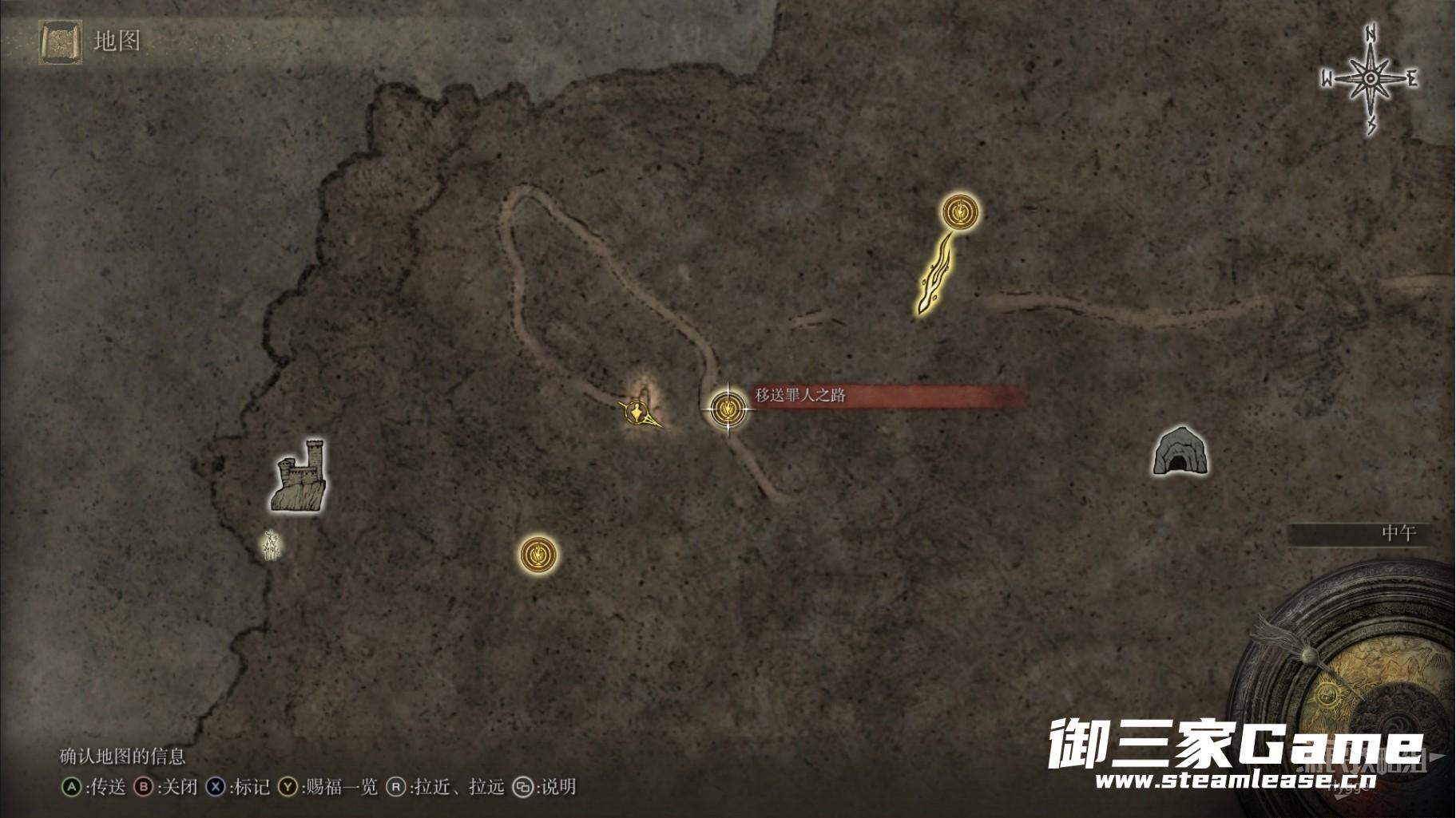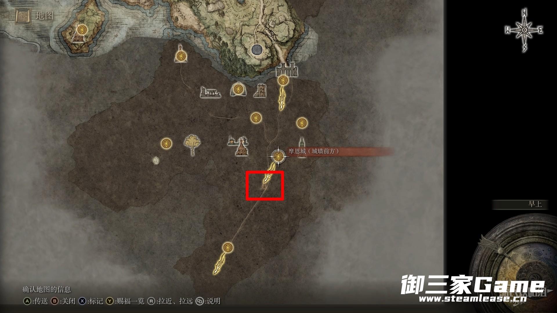 该地图碎片位于赐福【摩恩城(城墙前方)】南侧。