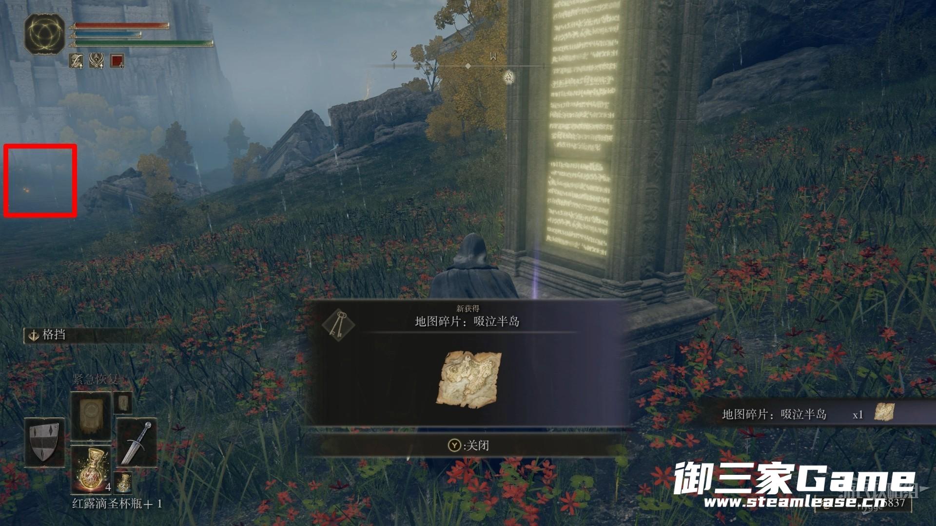 在关卡前废墟中的石碑下方可以找到该地图碎片。
