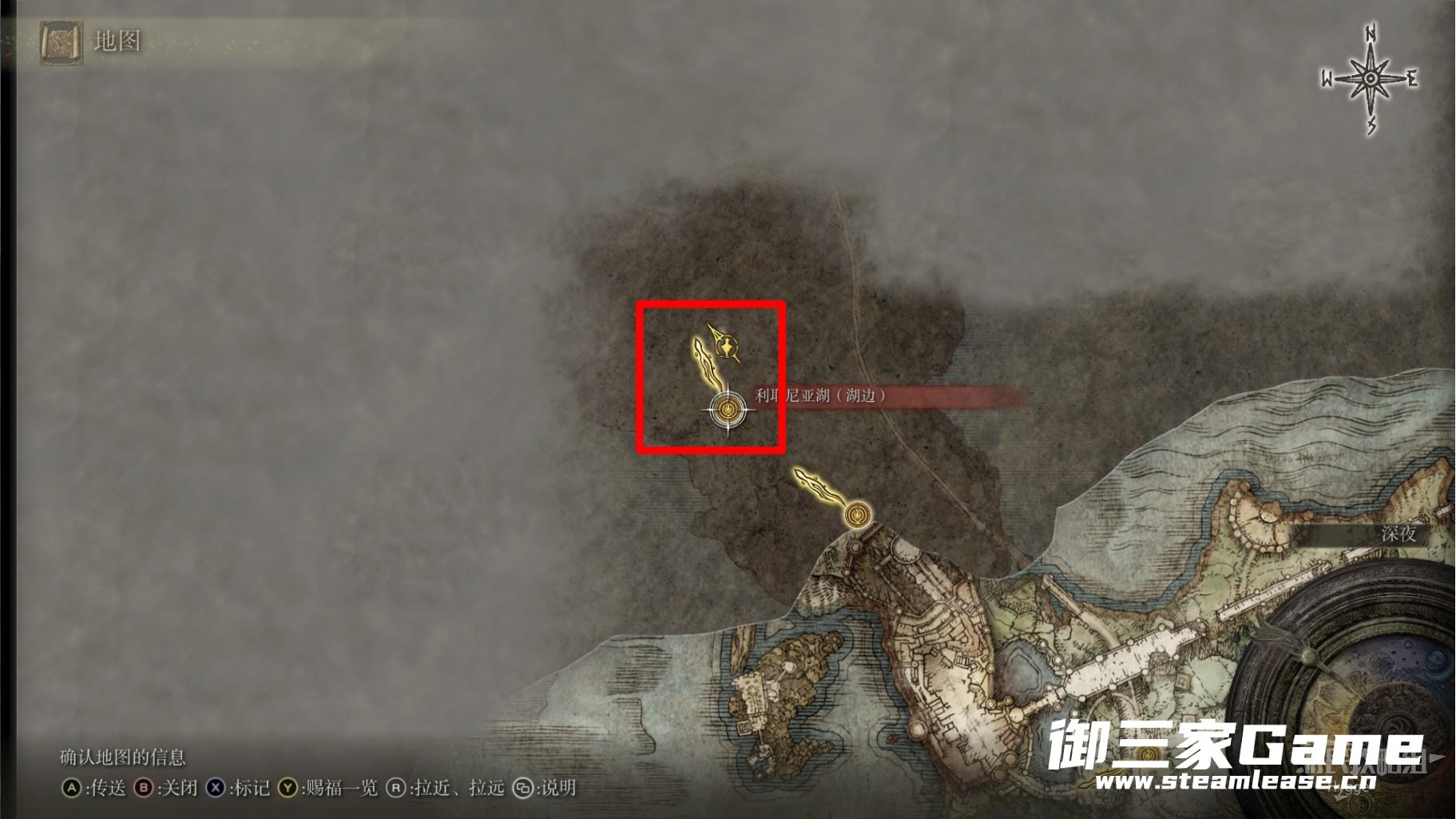 该地图碎片位于赐福【利耶尼亚湖(湖边)】北部。