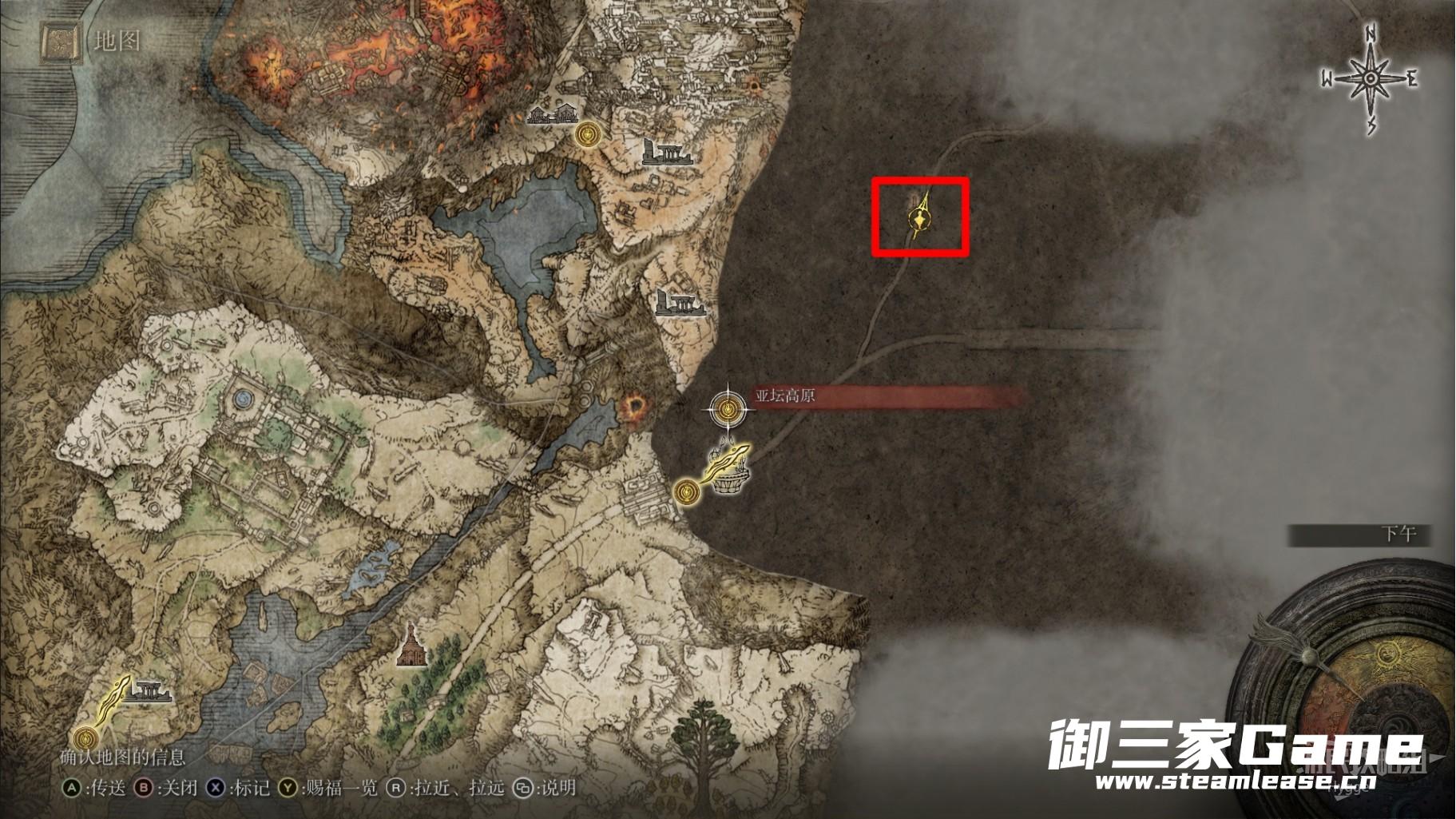 该地图碎片位于下图所示位置,从赐福【亚坛高原】出发沿着道路一直向北即可。
