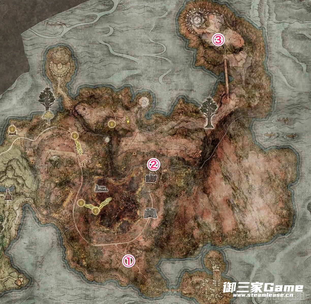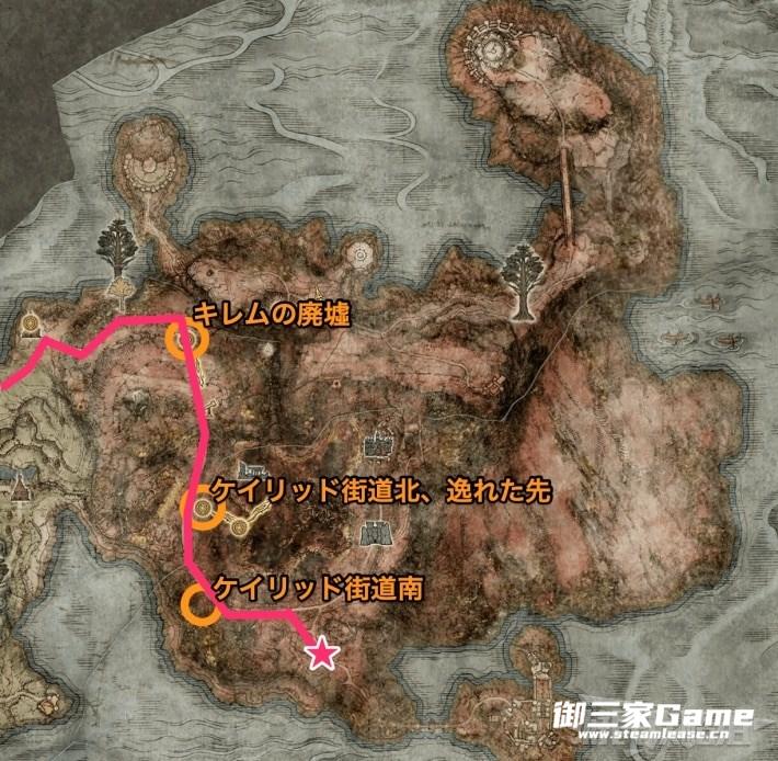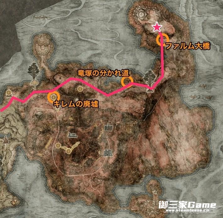 (下图标记点位自左至右依次为奇列姆废墟、龙墓的岔路、法姆大桥)