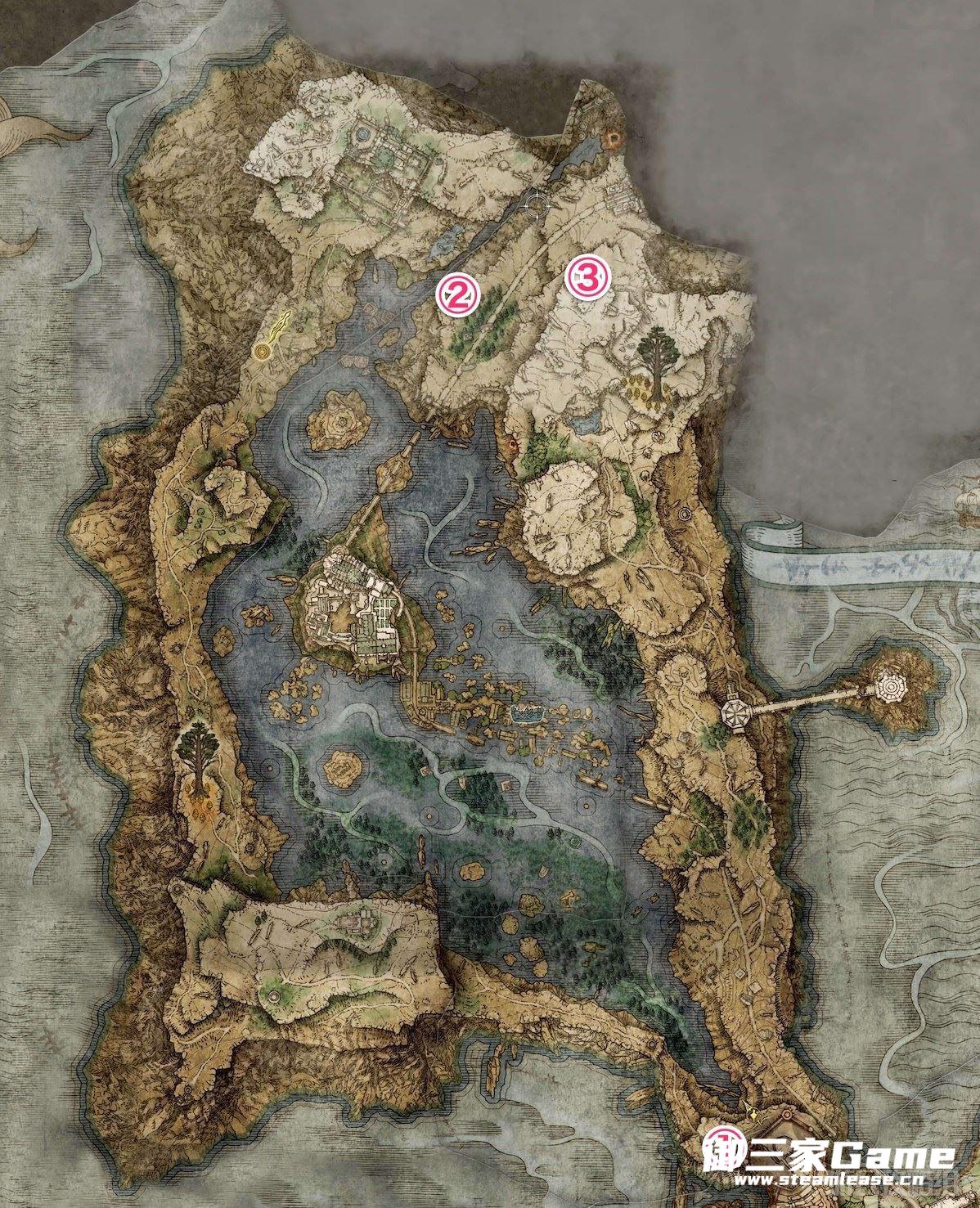 伊利斯教堂位于湖之利耶尼亚区域入口处的赐福点「傍湖断崖」附近。如果从宁姆格福出发但是没有探索史东薇尔城区域的话,可以参考下方粉色路线,沿着城堡西边狭窄的悬崖沿路即可到达。