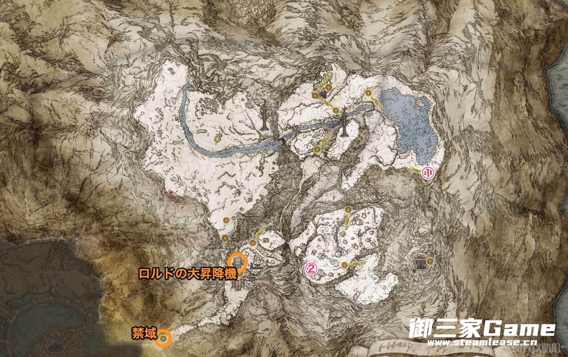 (下图中橙色标记赐福点位置自下至上依次为禁域、洛德大升降机)