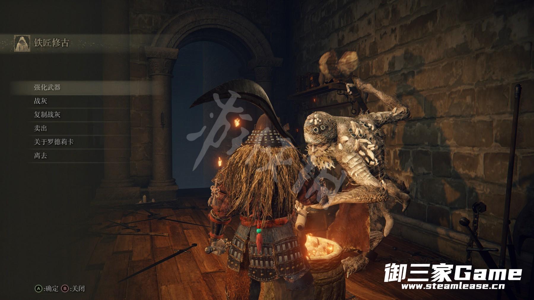 在圆桌厅东南侧的走廊可以和铁匠修古对话并进行强化装备。