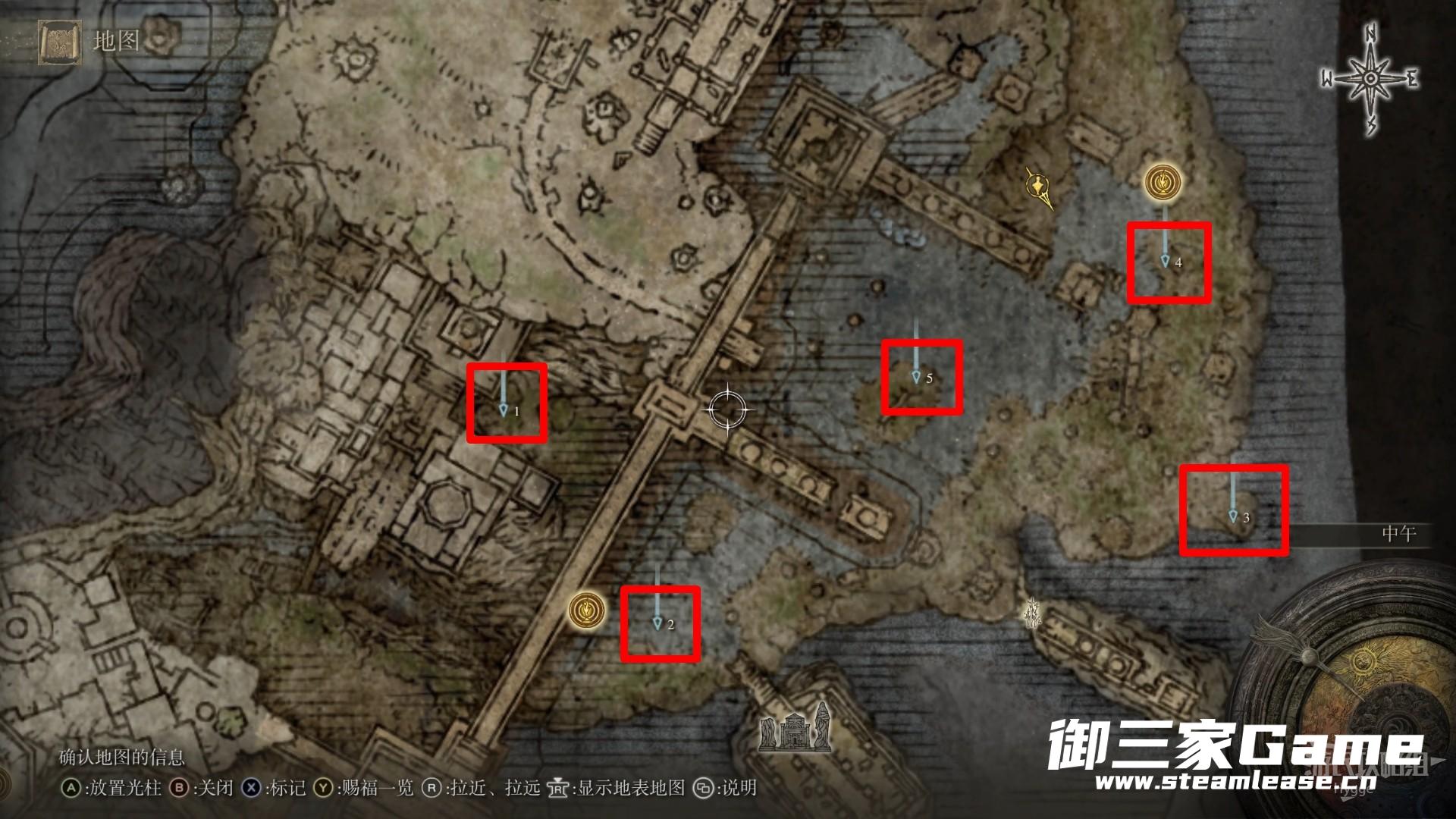 前五个火焰位于下图标记位置。