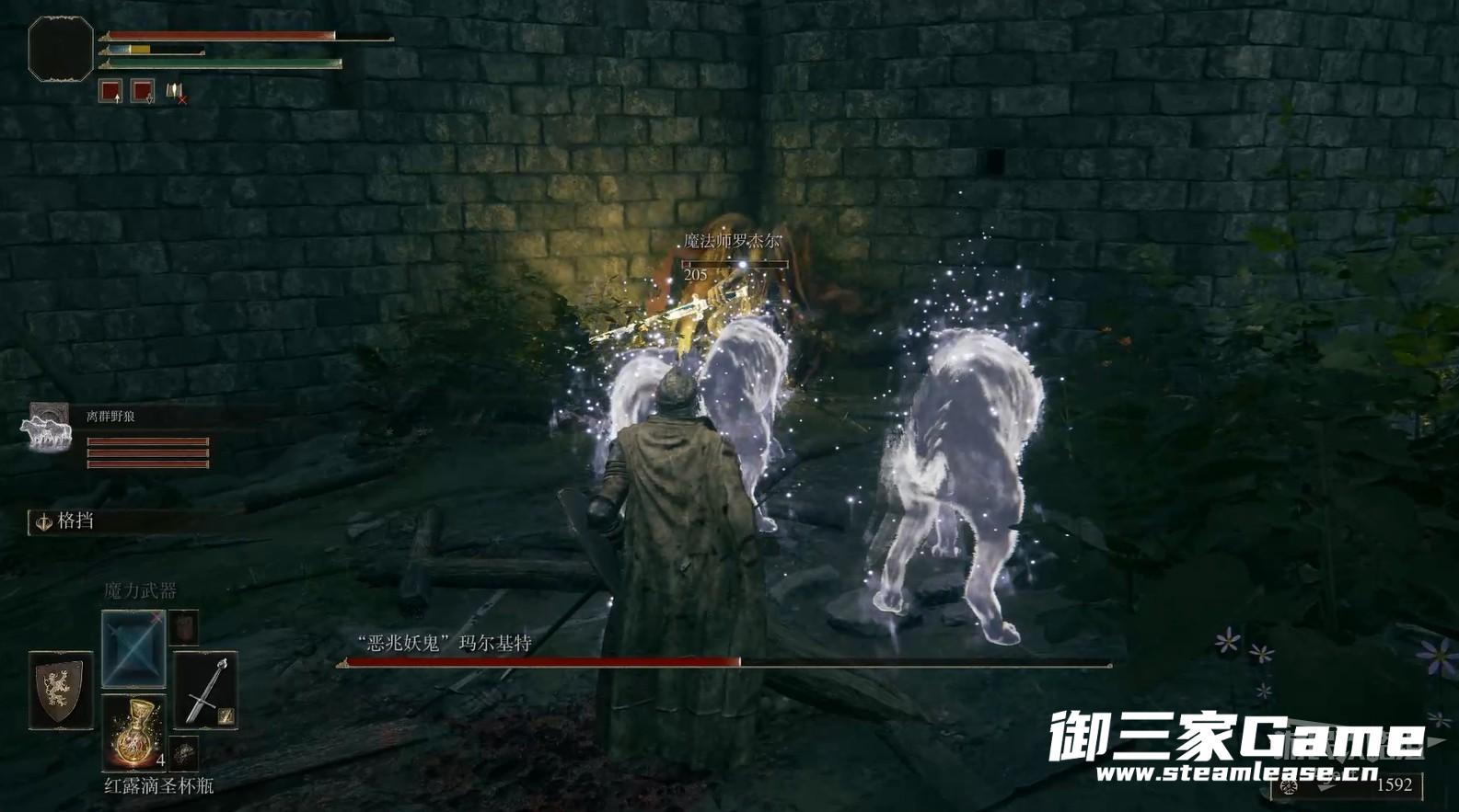 魔法师罗杰尔血快没的时候,召唤三只狼接力,持续吸引恶兆的注意力。