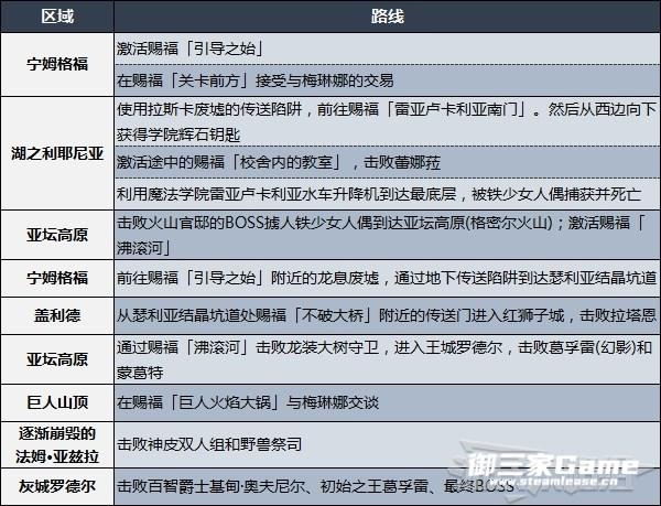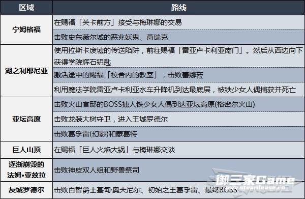 ※下方表格中的路线仅为建议,含有击杀NPC的行为,会影响相关NPC的支线任务,对NPC支线有需求的小伙伴请谨慎参考。