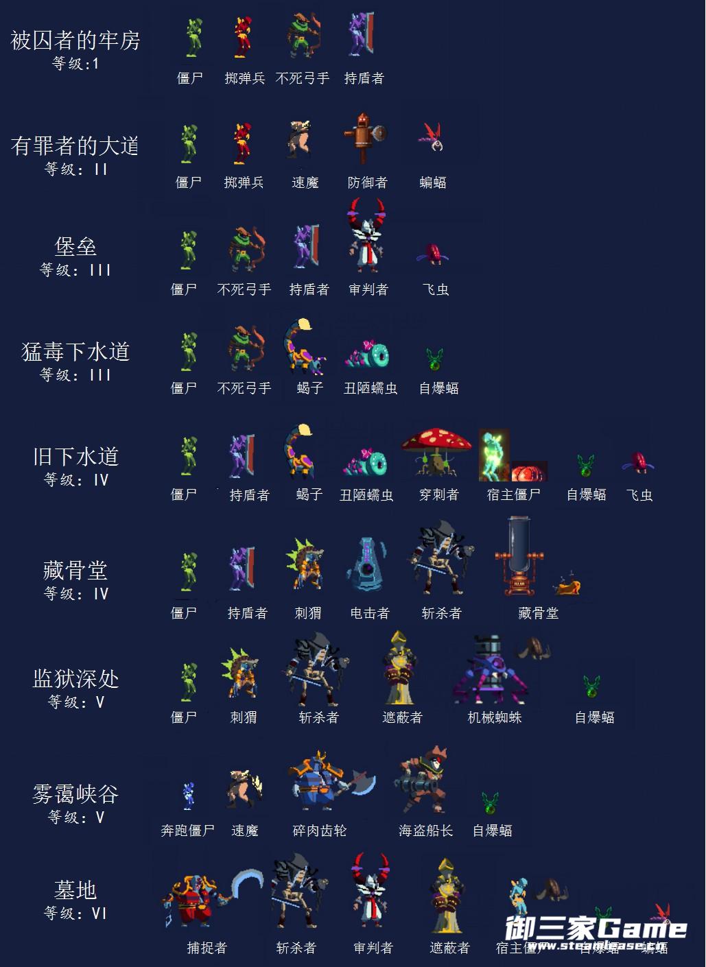 牢房只有四种怪物:不死射手、僵尸、掷弹兵和持盾者。