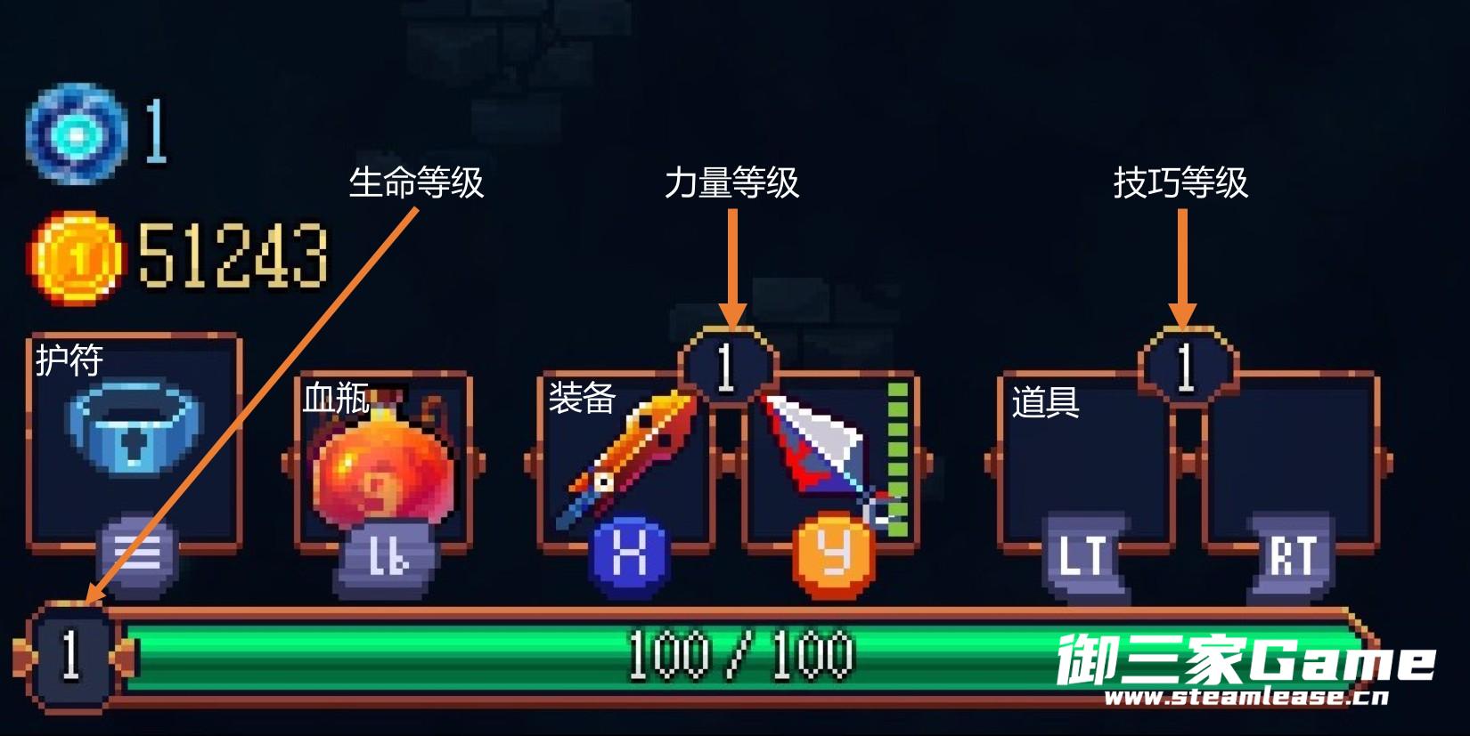 生命将提高生命上限,力量将提升武器的伤害,技巧将提升道具的伤害并降低冷却时间。