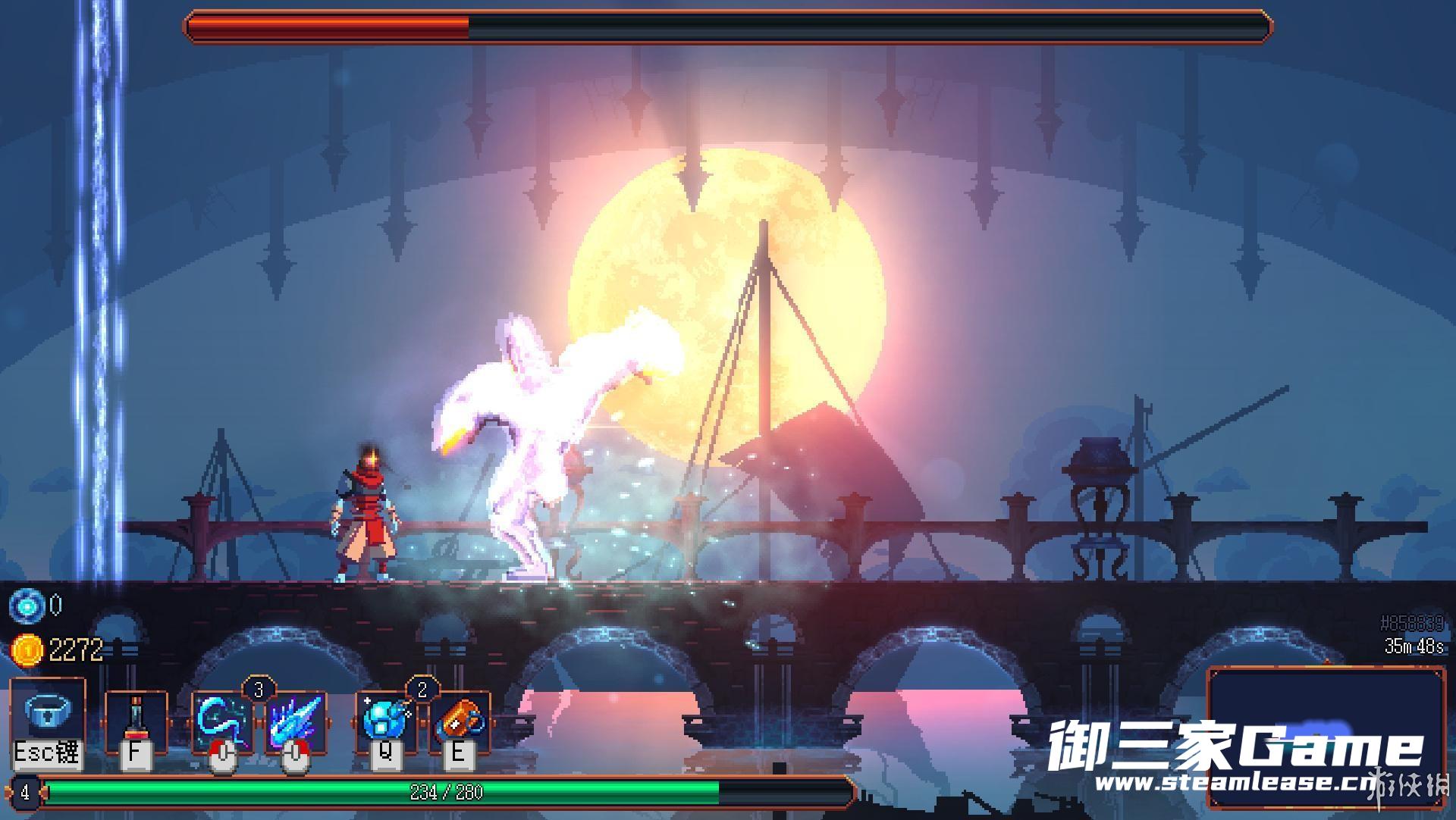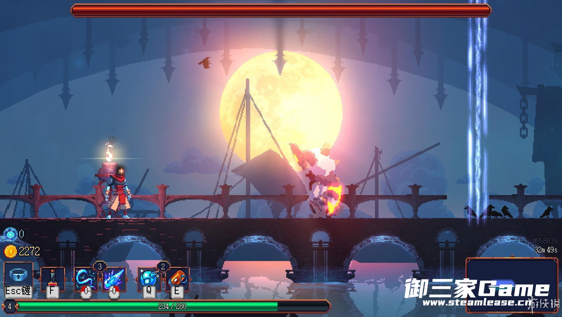 boss分为三个阶段。起初是被三条锁链绑着,唯一的技能是横冲直撞,并且在释放前有明显的弹道提示,很容易躲避。
