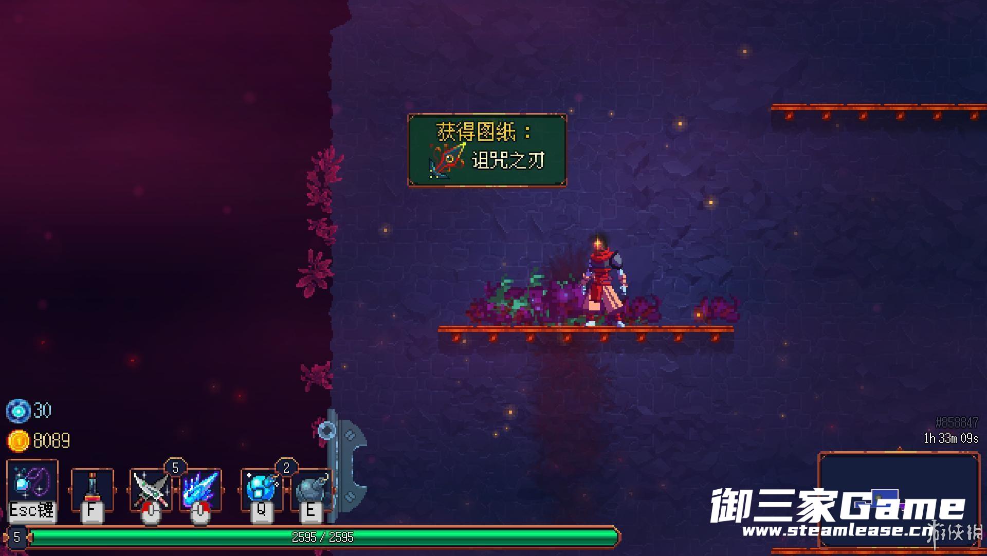 总结:闯这关时如果你拿着电鞭会很好打(所以两个boss都喜欢SM?),击败boss以后会得到新的图纸“诅咒之刃”
