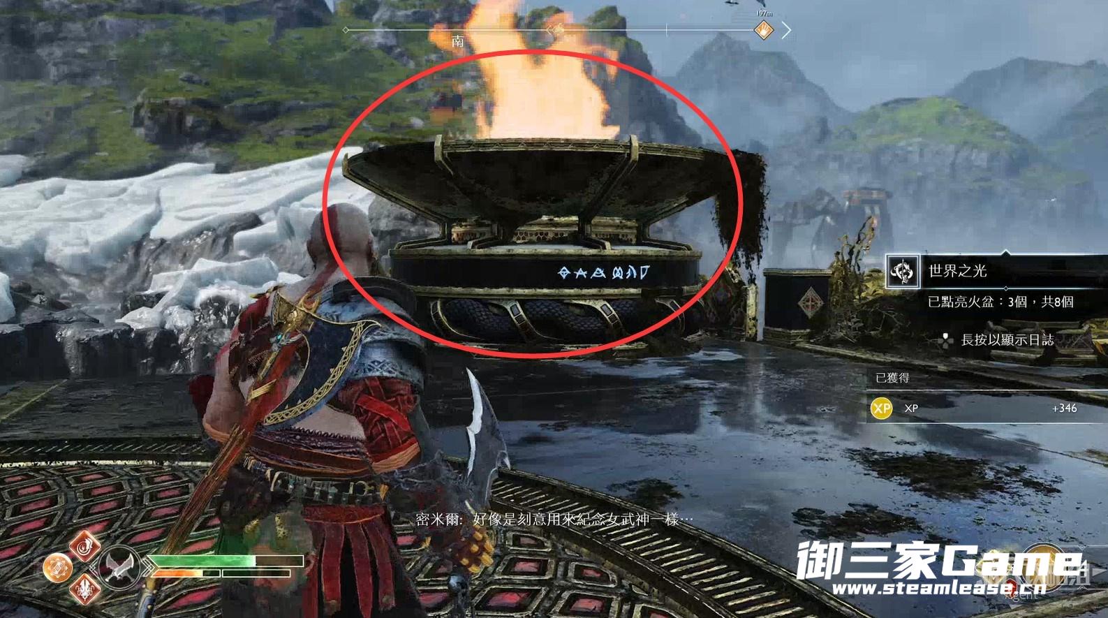 任务“约顿海姆近在咫尺”,会来到巨蛇腹中。拿到密米尔的眼睛的宝箱旁,有【符文对照盘碎片宝箱】。