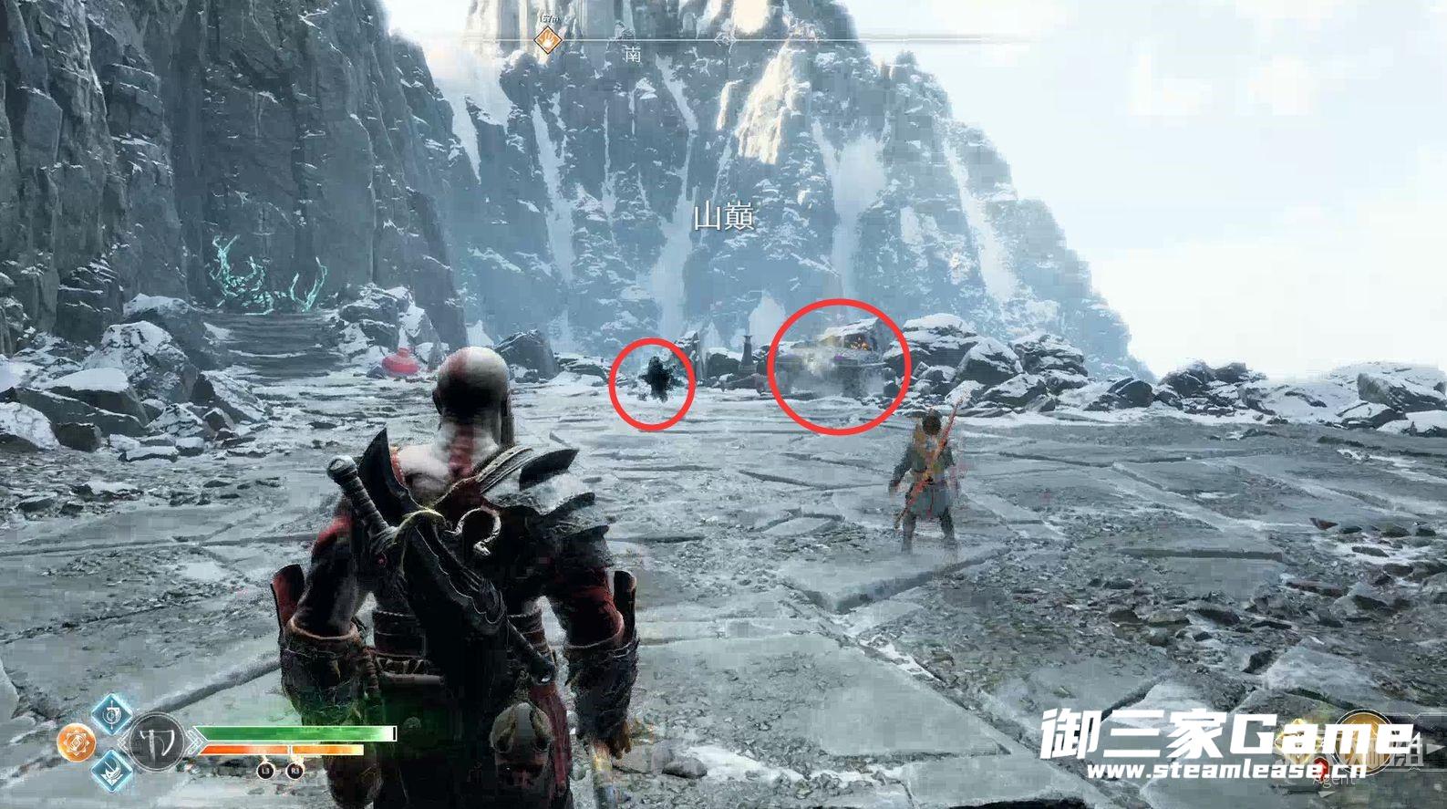 山巅。取下密米尔的头后,下山时有个【符文对照盘碎片宝箱】。