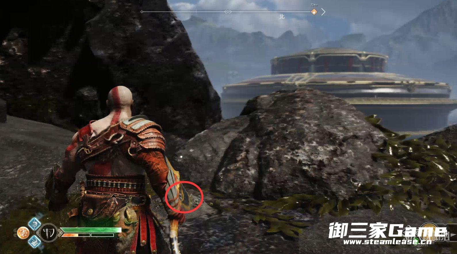 九界之湖水位下降后,从瞭望塔滑下滑索抵达穆斯贝尔海姆之塔。巨人神坛旁边挖出【宝藏】在索尔跟前跪下!