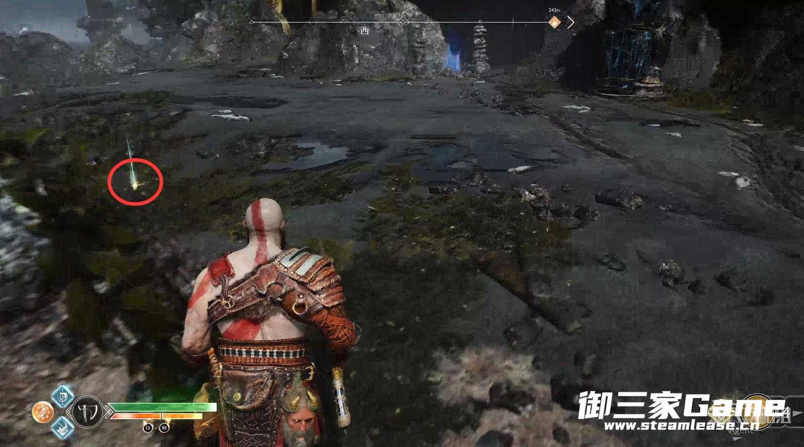 九界之湖水位下降后,石匠水道口西侧码头。传送点旁捡到【藏宝图】光之岛。