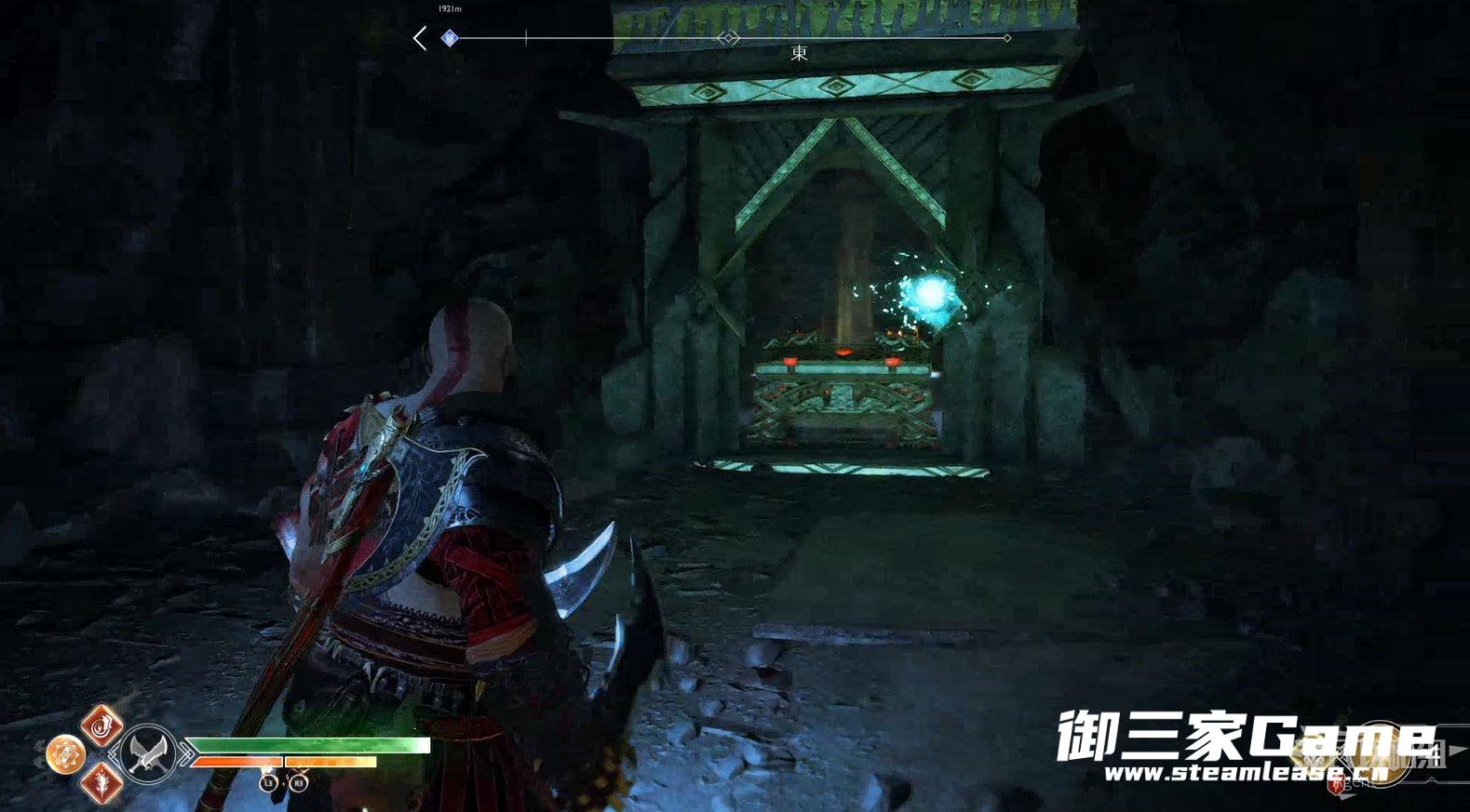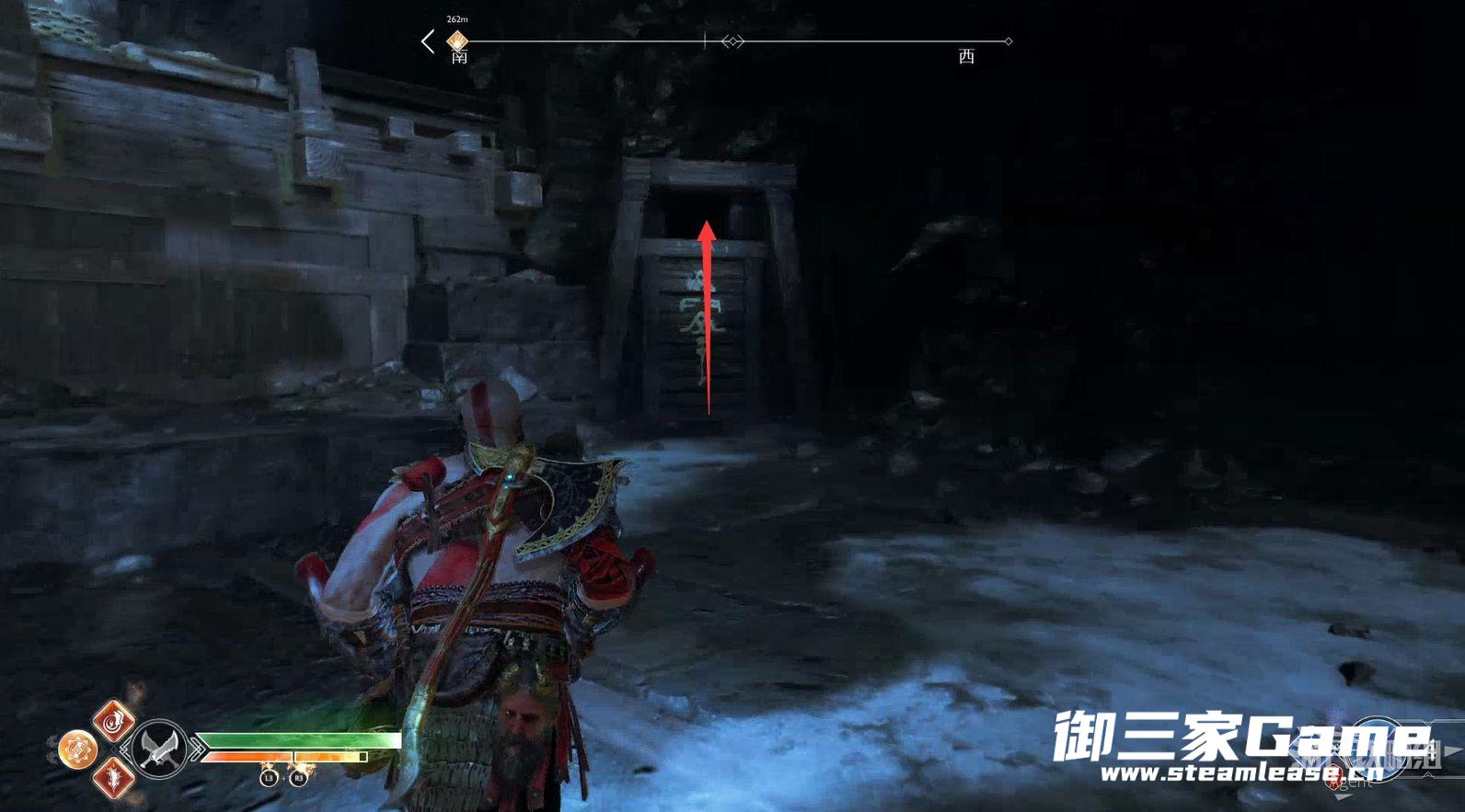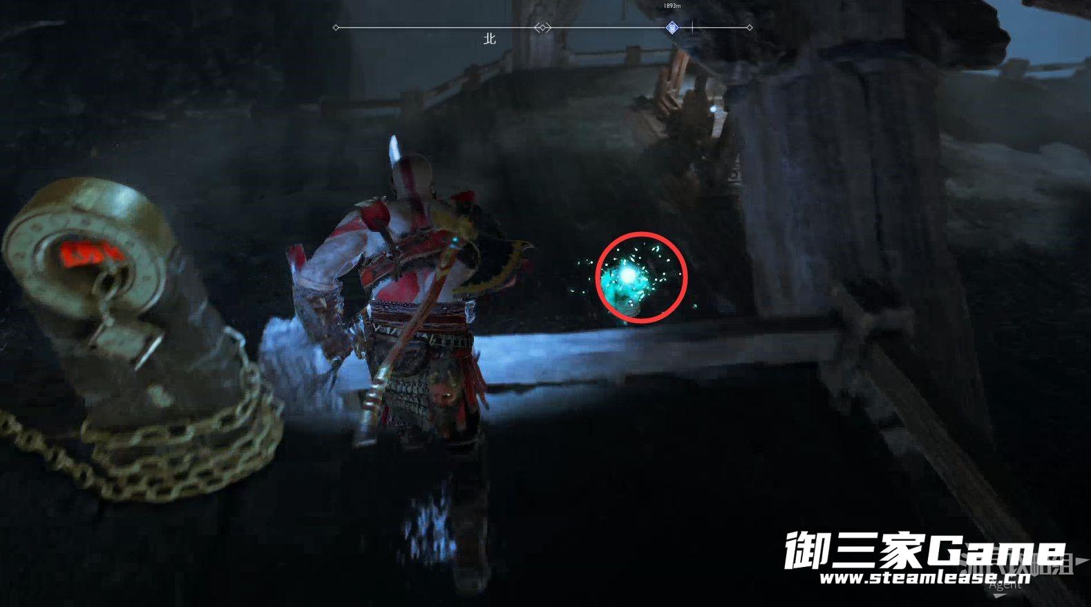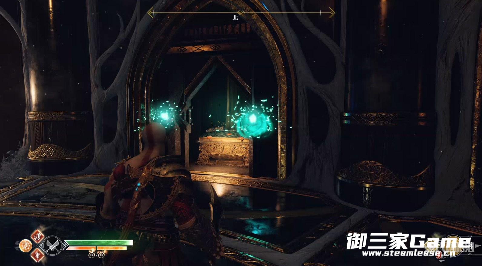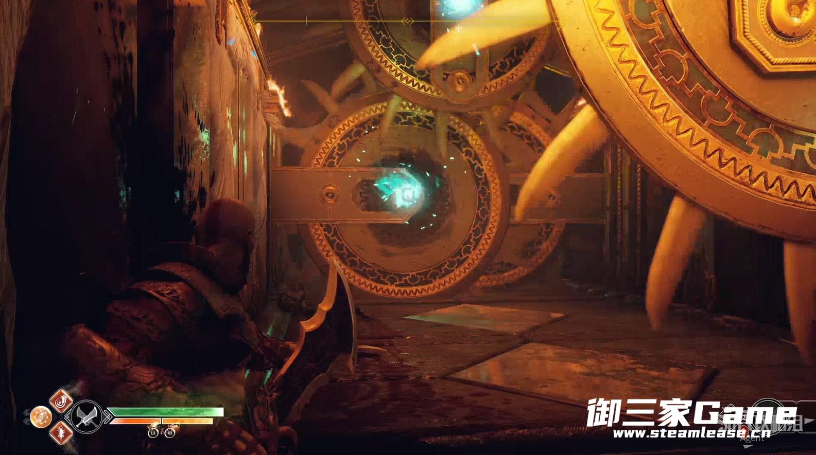 2、赫尔海姆获得捕风能力后,主线“回到山顶”,乘电梯上来后,送阿特柔斯上去放下铁链,上面的门里有个怪,还有个需要赫尔之风打开的机关。