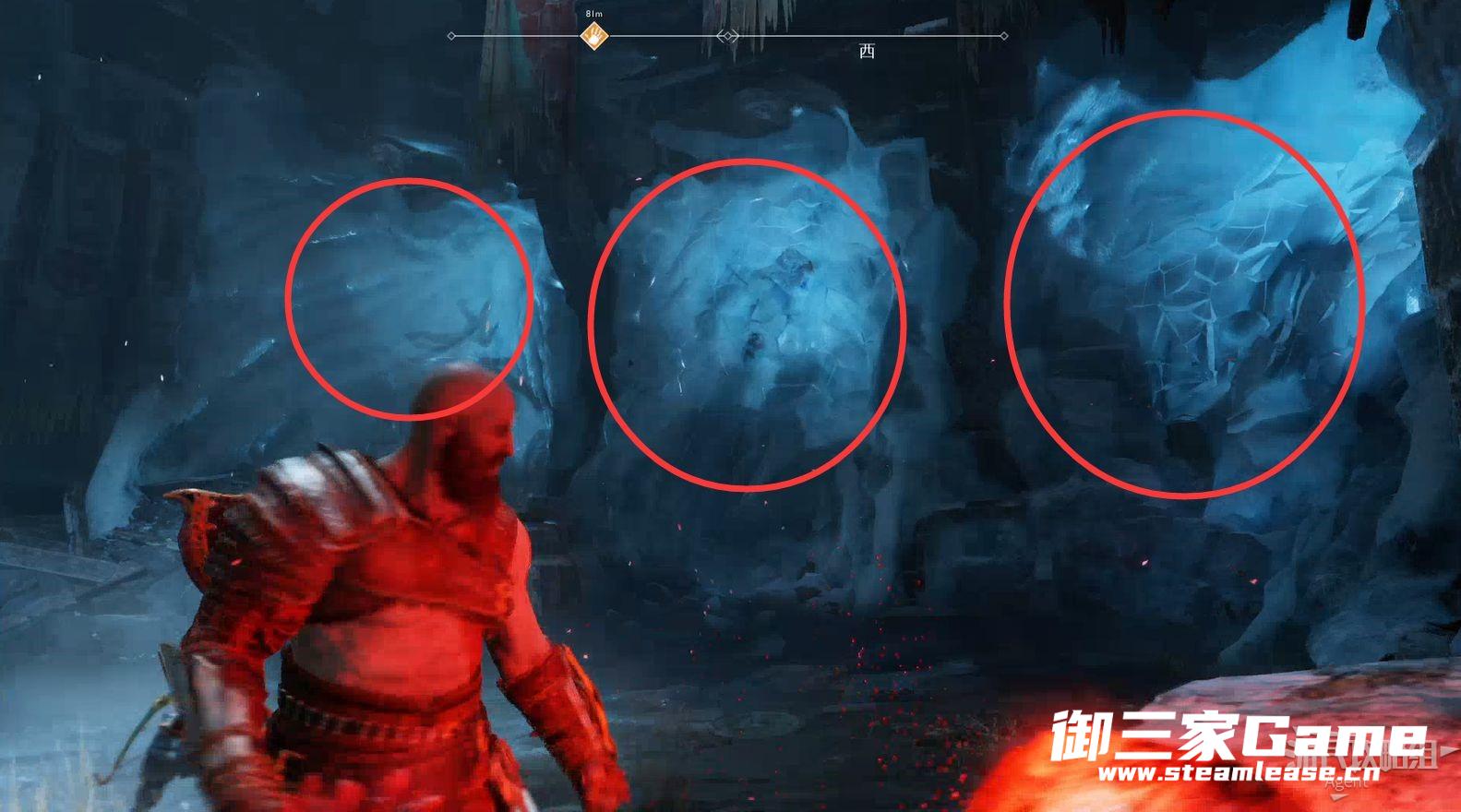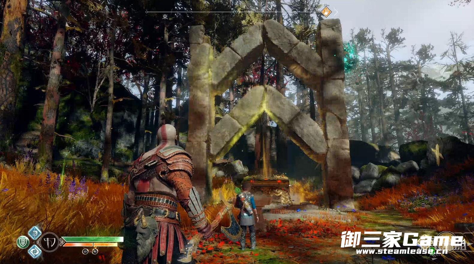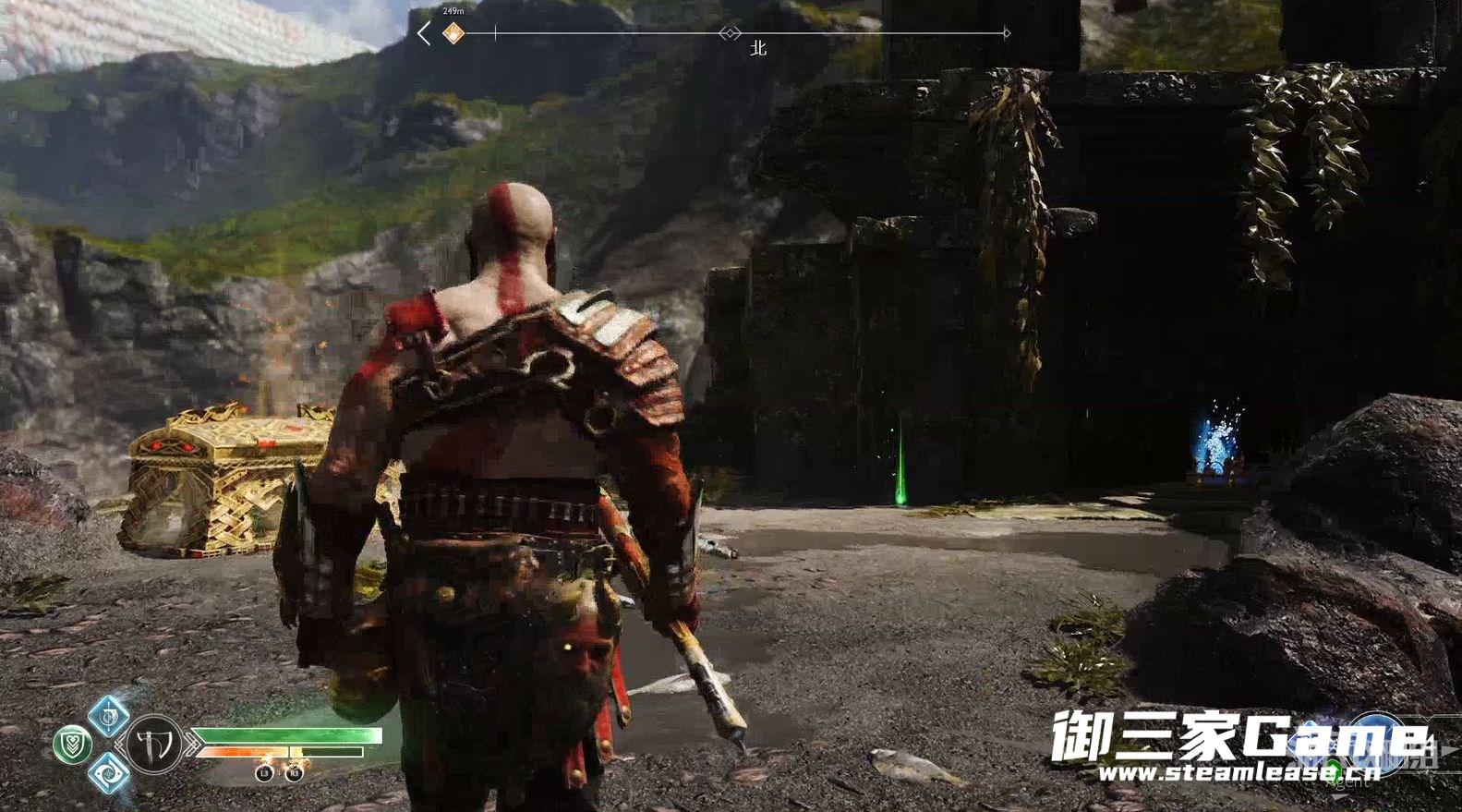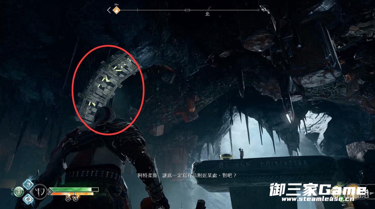 3、新的目的地-河口,回到女巫洞穴,打开奥丁密室旁的门继续探索,从这里送阿特柔斯上去。(旁边的黑色藤蔓等拿到混沌双刀后才能摧毁,到时老父亲也能爬上去了)