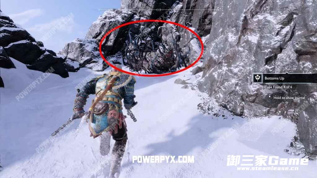 来到【山】地区的山顶,这里有一个快速传送点(主线流程中无法使用,通关后才会解锁)。找到密米尔后,俯瞰山口(下图1),跳下去向右走,前方有一个被植被覆盖住的宝箱,清理掉植被后打开宝箱即可获得【神话清晰臂套】。