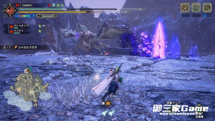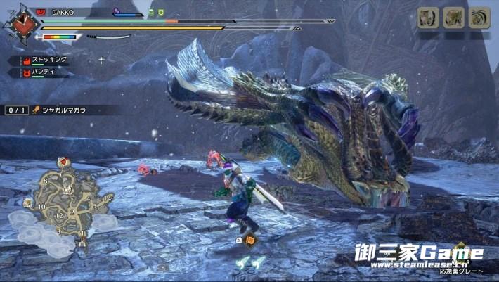 天廻龙的吐息和突进攻击比较频繁,从正面输出很危险,绕到侧面或后面会比较安全,但也并不是完全安全,会被一些横铲和旋转攻击打到。