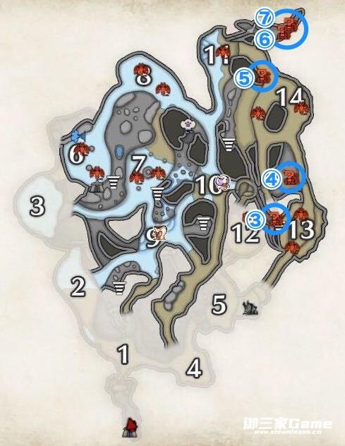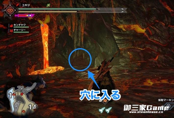 3.从区域5进入洞内,到区域13后爬上左边悬崖。