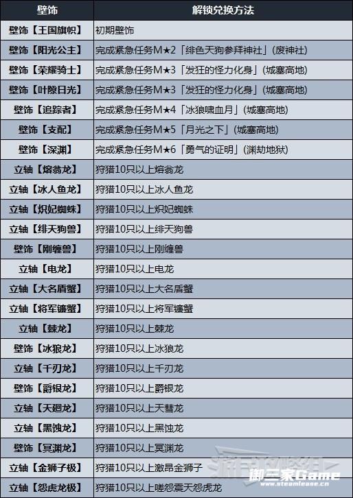 立轴壁饰可以从交易船的特别物品中兑换获得,可兑换的道具种类会根据集会所的MR来增加。下方列出部分获取方法。