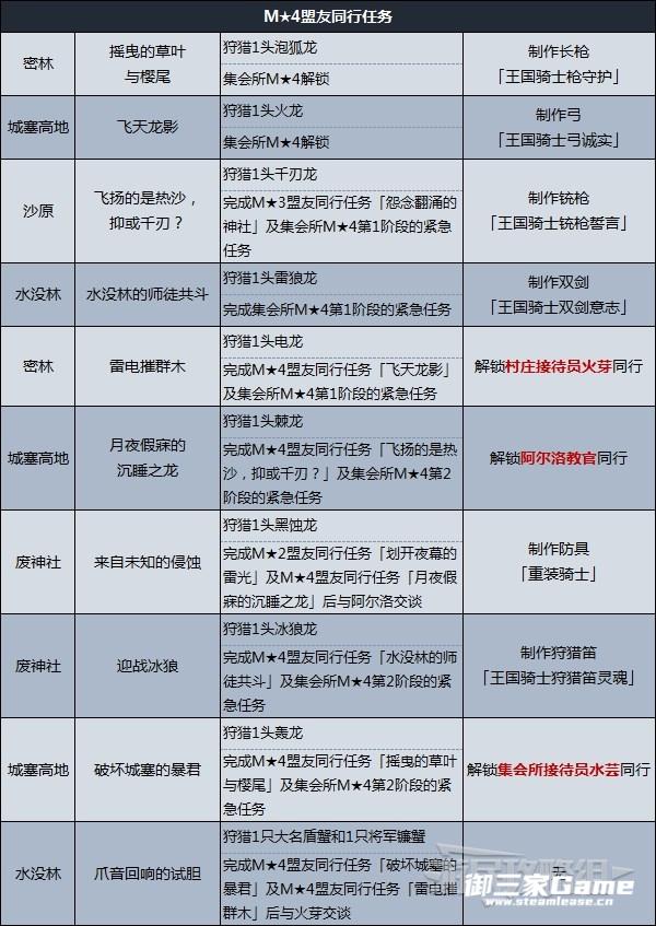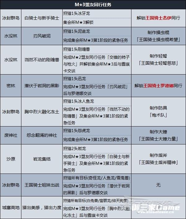 盟友同行任务是《怪物猎人崛起》曙光DLC中由盟友委托的单人专用任务,能够加深与盟友间的牵绊。那么这些盟友同行任务该怎么解锁呢?下面就为大家介绍一下《怪物猎人崛起》曙光盟友任务解锁条件及奖励,希望对大家有所帮助。