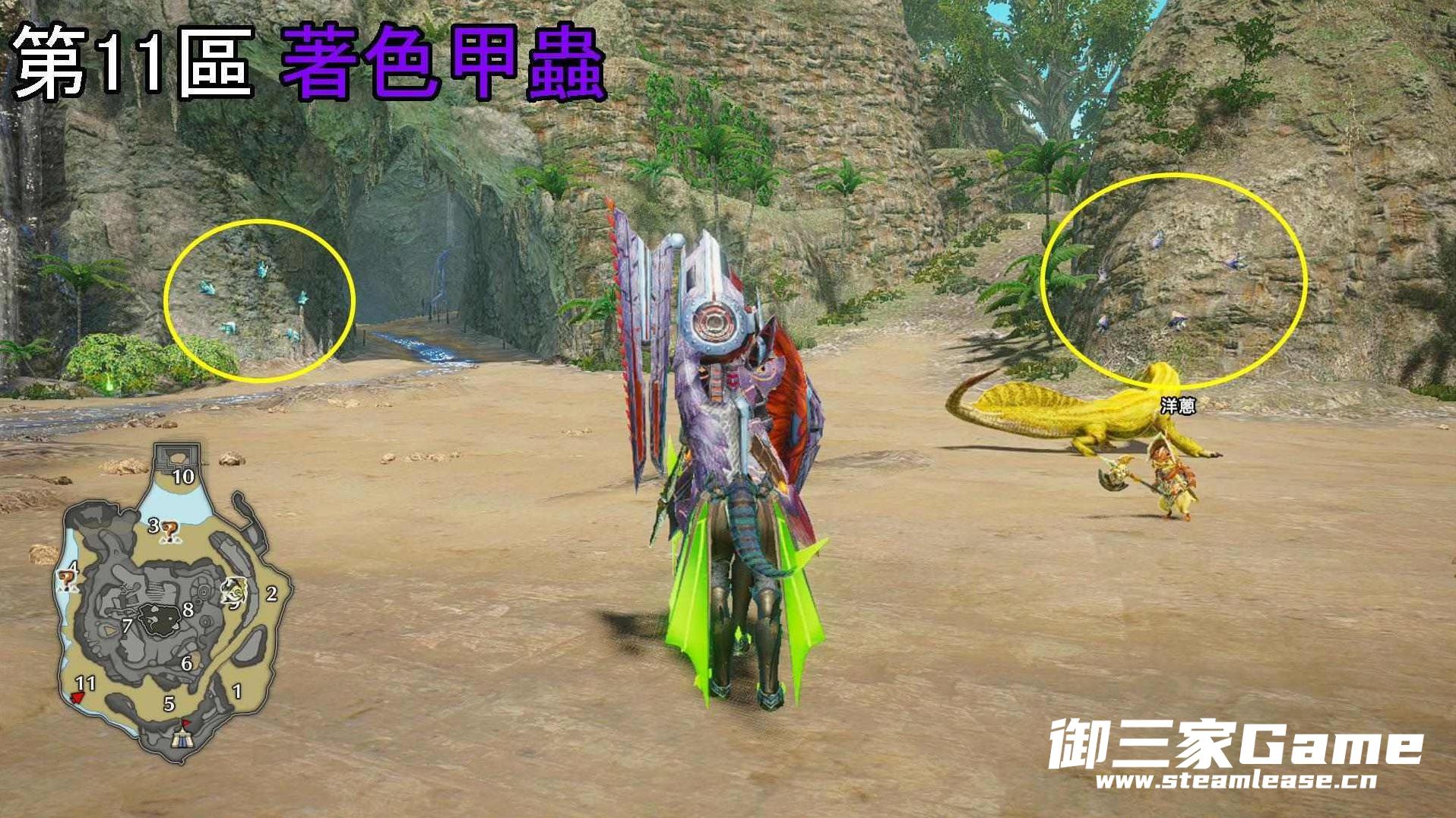 第9、11区有着色甲虫,只要在操龙的情况下撞击按Y撞击甲虫,就可以产生对应环境属性的伤害~