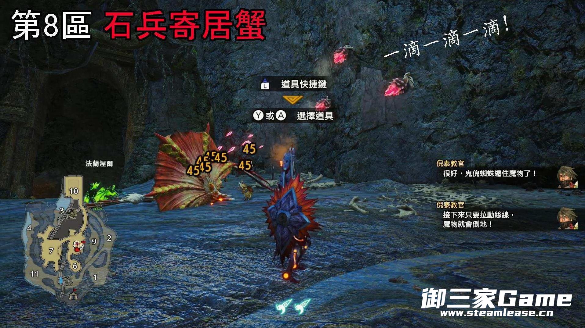 第8区有石兵寄居蟹,魔物只要在寄居蟹面前被"牵制住",牠们就会发动猛烈攻势。估计有1350以上的伤害。