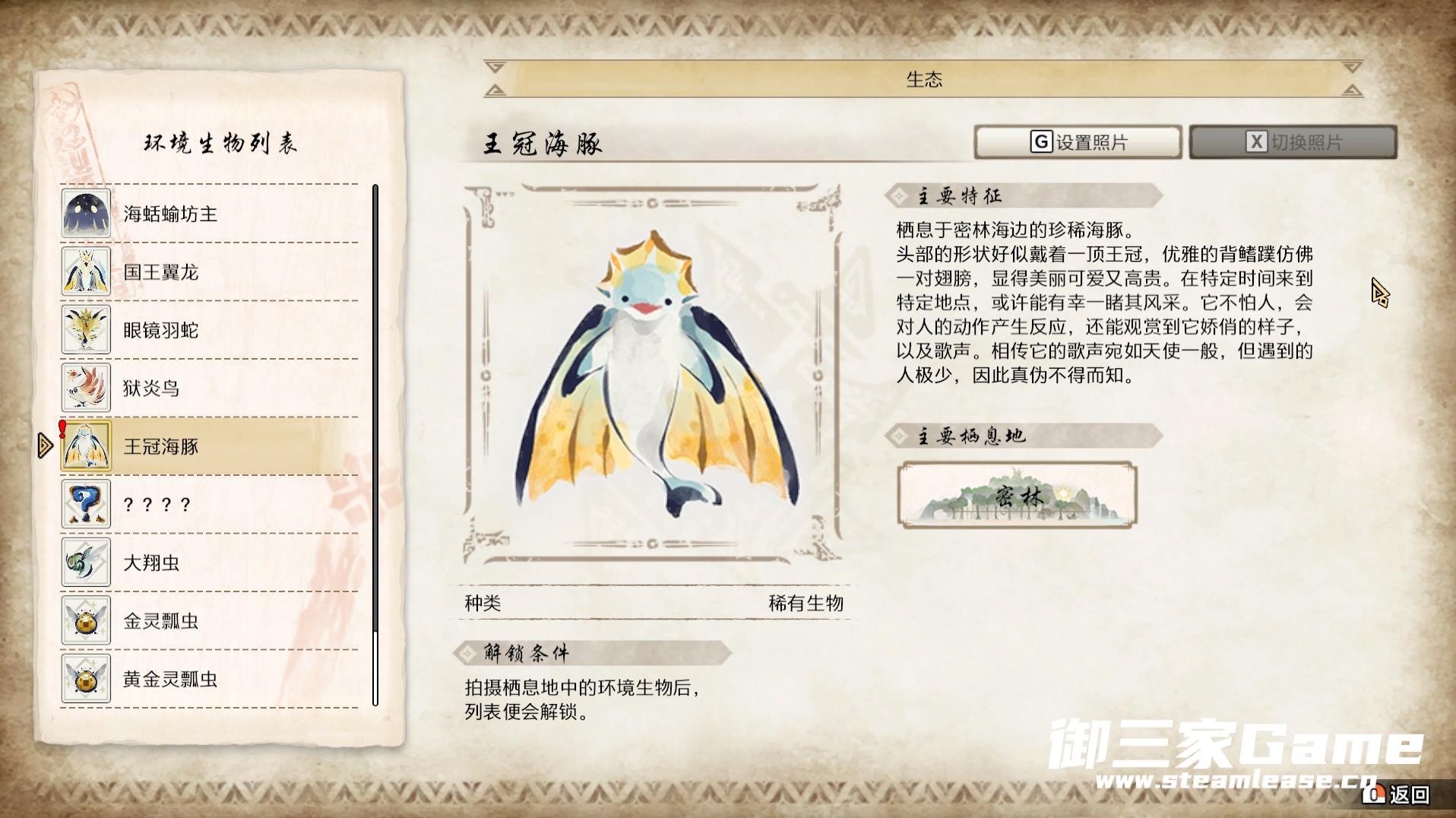 《怪物猎人崛起》曙光DLC的密林地图中可以找到珍稀生物王冠海豚,下面请看由“四度的水”带来的《怪物猎人崛起》曙光DLC密林珍稀生物王冠海豚位置展示,一起来看看吧。