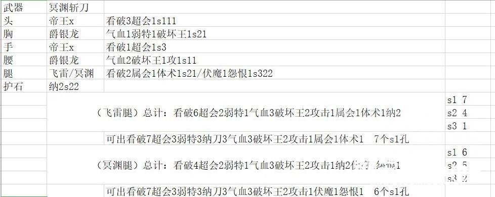 护石纳2s22,不是那种攻击拉满的竞速配装,别喷我乱配哈,发个思路给想配吸血的太刀,飞雷和冥渊腿差一个s1可以看各自取舍,不过我选防御高的。