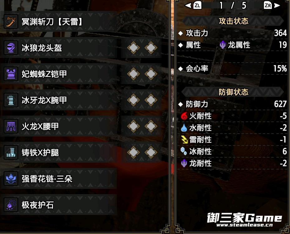 解禁之后配了一套,换了冥渊龙太刀之后会心有点低 ,孔位也差点意思,就抠掉点攻击靠精神抖擞来补会心。