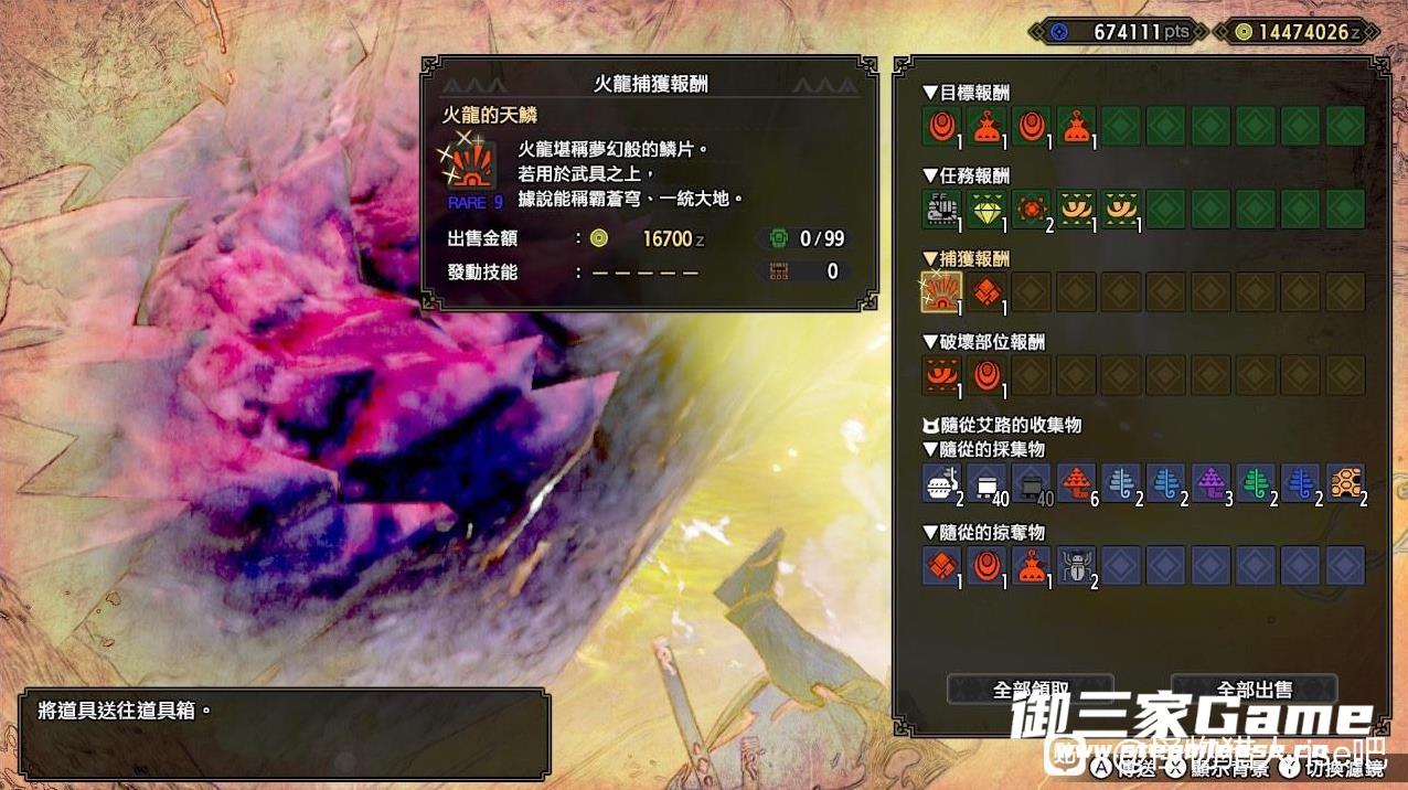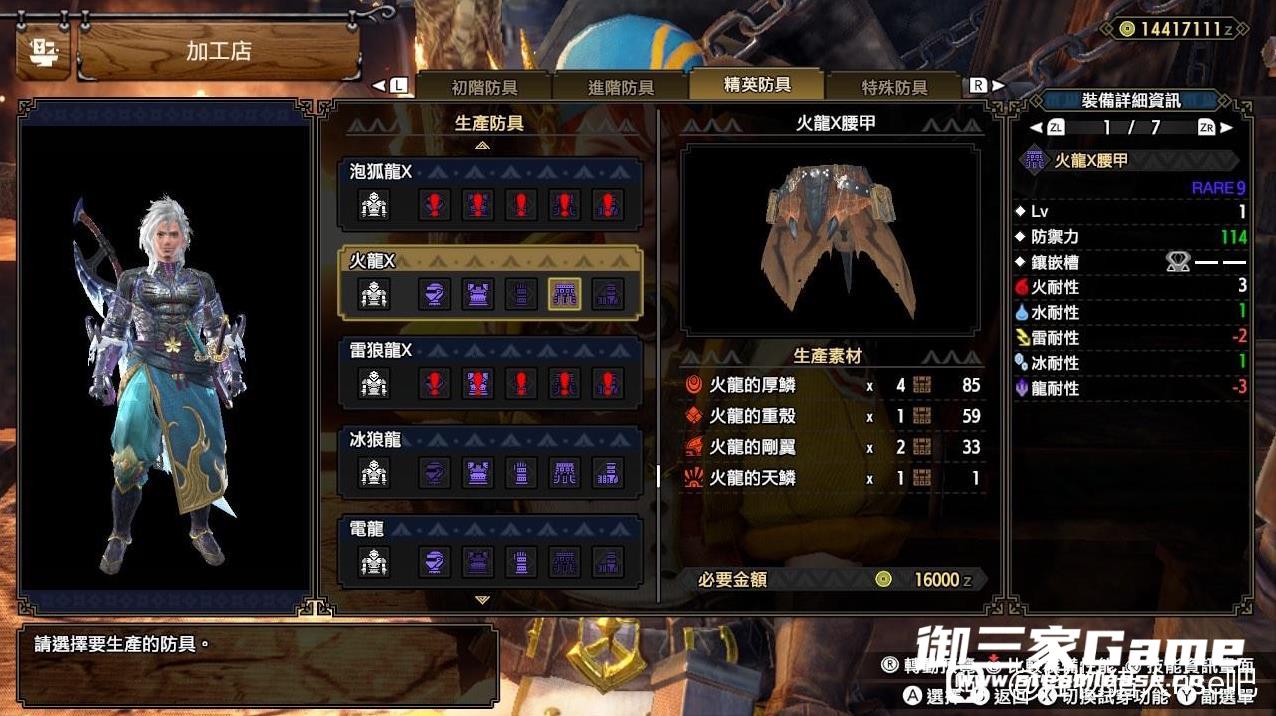 解禁后一直想换了原来的上位套,但怨念物火龙天鳞迟迟未出做不了火龙腰,直至MR65才出,累死老人家了。新护石未开试刷,用的是以前的攻3S21。喜欢联机的可以用,基础技能齐全,护石可以根据需要替换保证功4就可以了,打弱点会心90,配的是冰狼R10大剑。