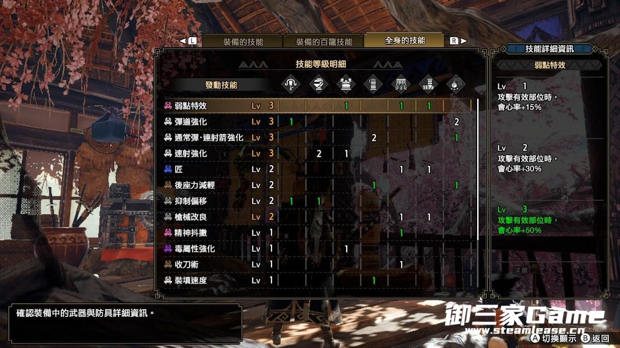 弱点特效LV3(补负会心,这东西可没有百龙技能,只有百龙孔)