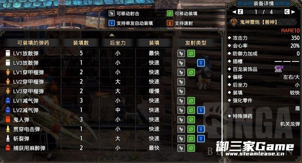 激昂金狮子弩,在三级装填扩充,三级反动减少,三级装填速度增加,2级偏移修正的情况下