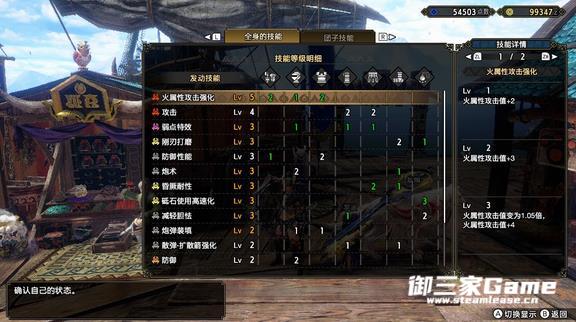 选择钢刃研磨打全弹流,一级孔奇多随便插了加属性的还有耐绝耐冲这些目前打到G3没啥太大压力,就是不知道这套531的防御力能撑到G几。