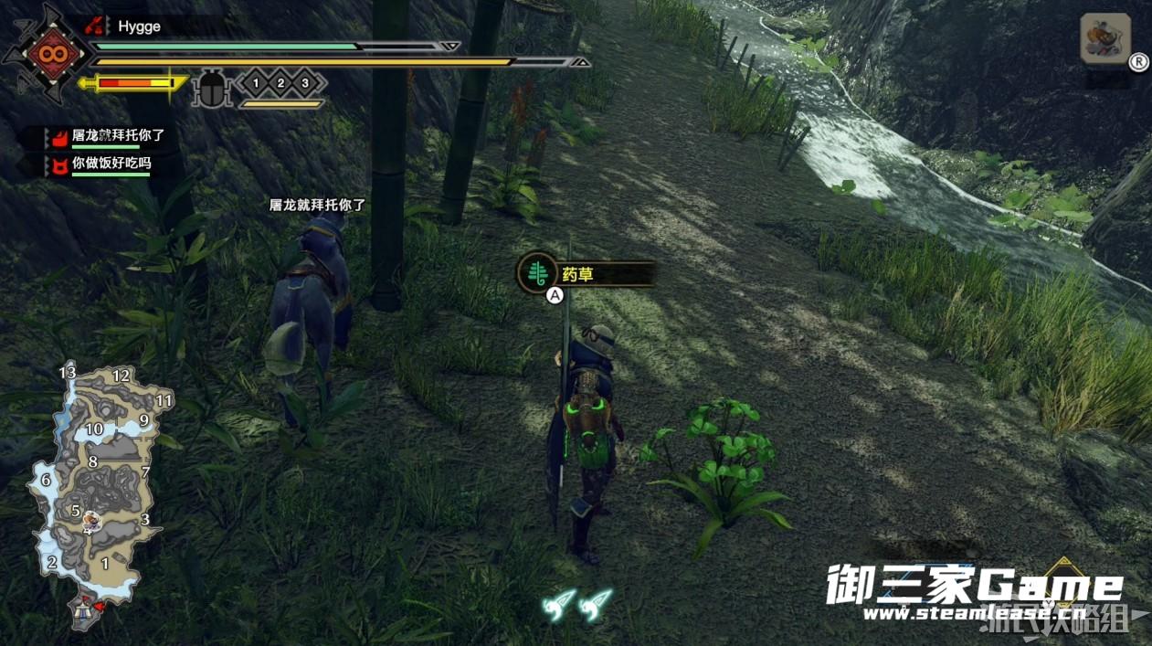 当角色站立不动时按B可以进入蹲伏状态,在移动中按B则可以使角色翻滚,翻滚是躲避怪物攻击最常用的方式之一。
