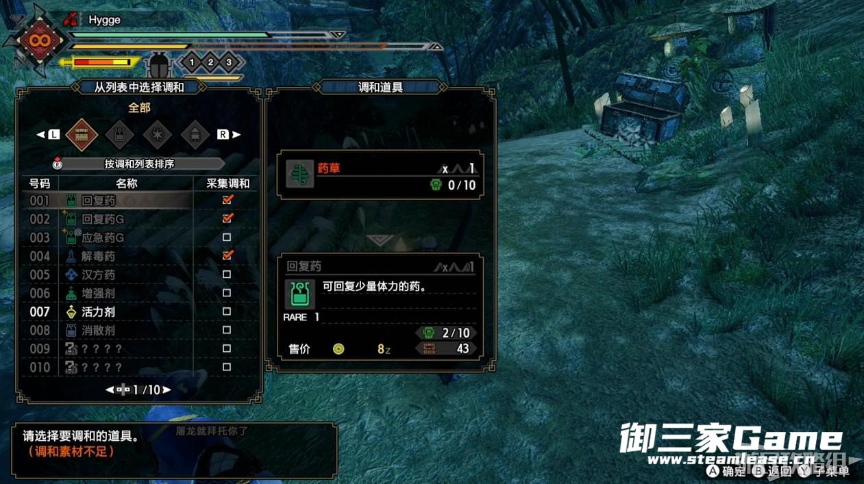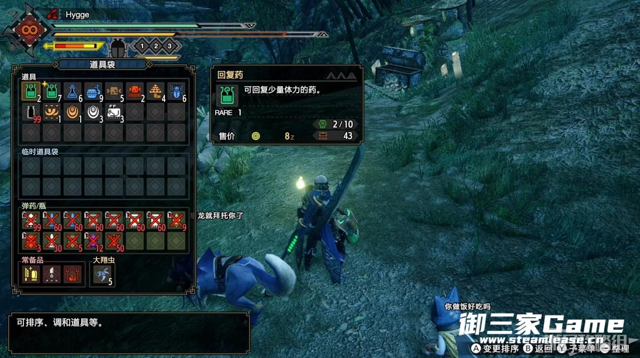 在主界面按住L键可以选择道具,通过Y和A键左右切换选中道具。选择完毕后松开L键,在收刀状态下按Y键即可使用道具。