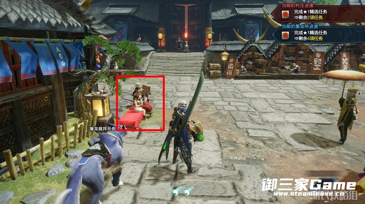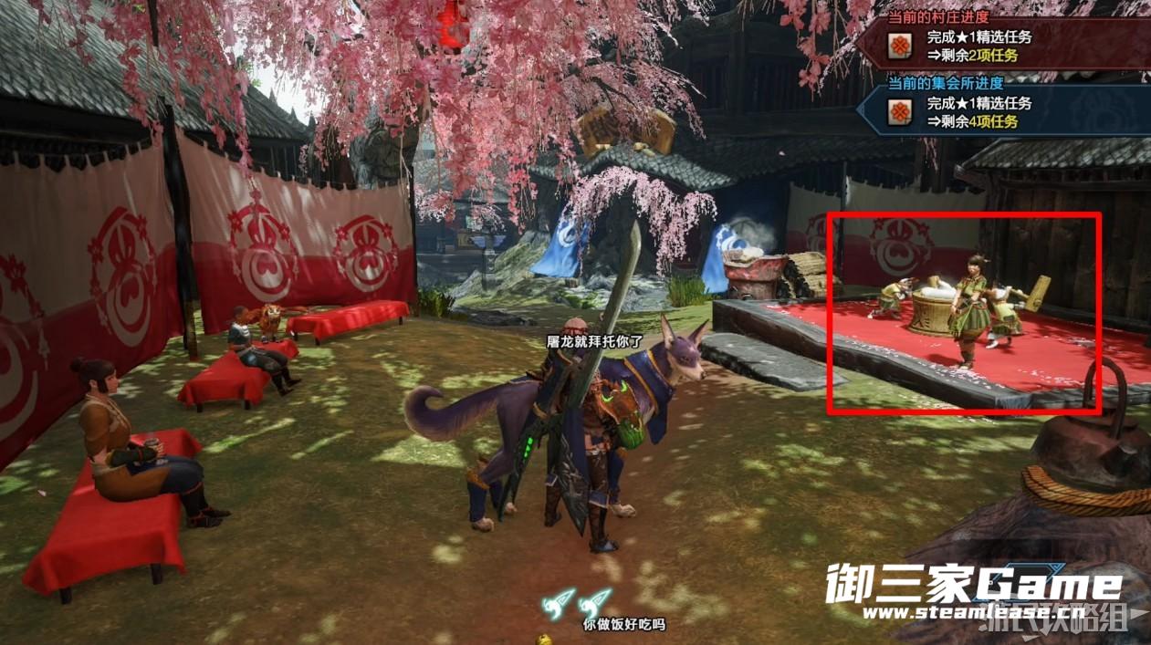 沿着广场道路左转可以找到茶点店店主艾草,每次出发任务前可以在此处食用点心后会获得各种各样的加成。