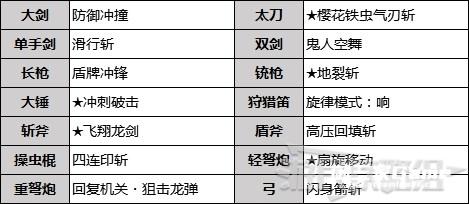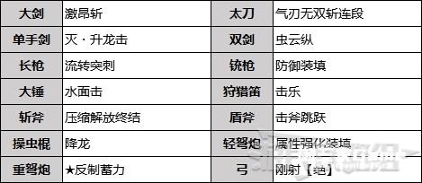 ★狩猎锋刃:可使用翔虫在空中释放施加全身体重的回旋斩。命中时,猎人的身体会向上跳跃,并趁势使出蓄力斩。