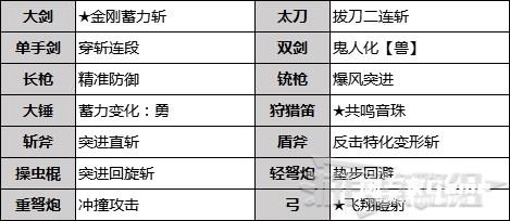 鬼人化【兽】:发动后会逐渐消耗耐力,同时攻击与回避动作会发生变化,且后仰无效。进入特化攻击状态,进行回避动作时会发动斩击。