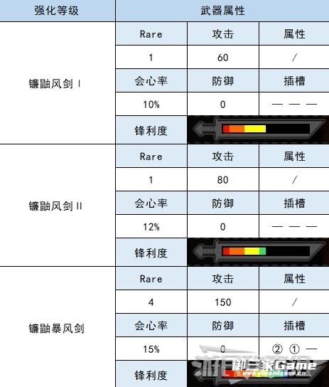 镰鼬龙大剑的各强化等级和所需素材如下,该武器需要基底武器炎火铁大剑Ⅰ。