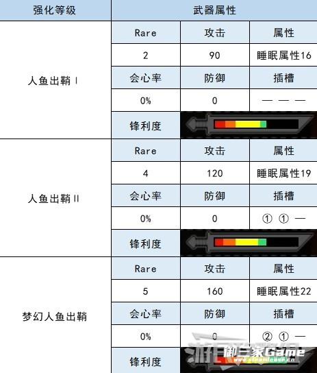 人鱼龙大剑的各强化等级和所需素材如下,该武器需要基底武器镰鼬风剑Ⅱ。