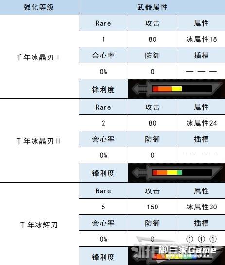 冰属性单手剑的各强化等级和所需素材如下,该武器需要基底武器炎火铁单刃Ⅱ。