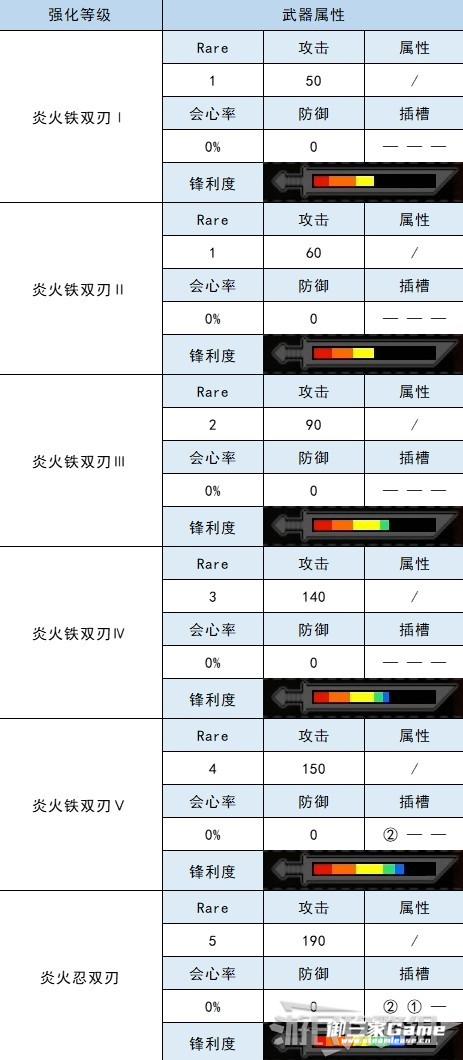 奇怪龙双剑的各强化等级和所需素材如下,该武器需要基底武器炎火铁双刃Ⅱ。